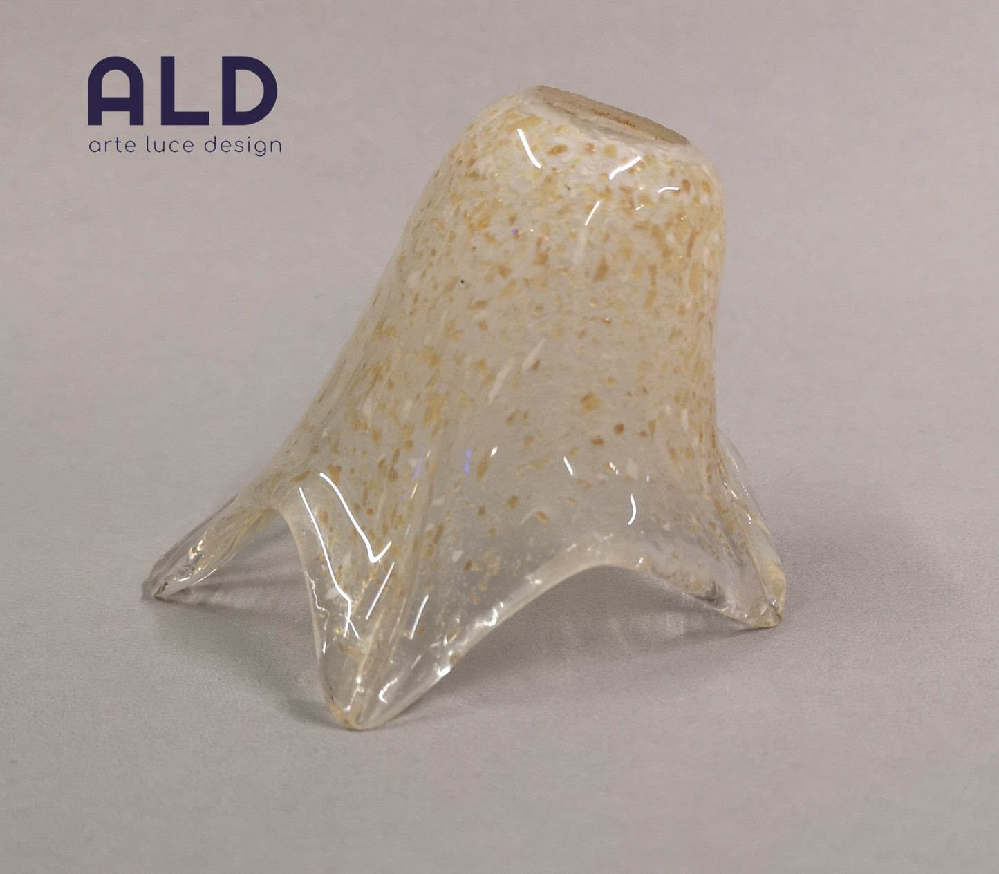 ALD propone per te in questa inserzione... Boccia in vetro dalla lavorazione semplice ed elegante a 4 petali. Può essere utilizzata praticamente su ogni supporto: su lampadari di vetro o con struttura metallica, su opere anticate o su modelli più contemporanei.