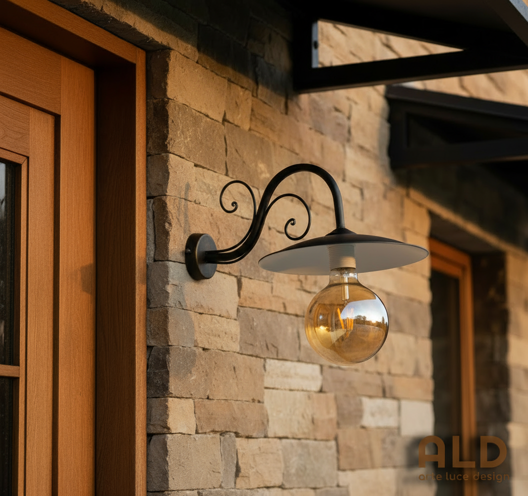 applique da esterno e27 a parete in ferro con braccio e piatto 30cm protezione