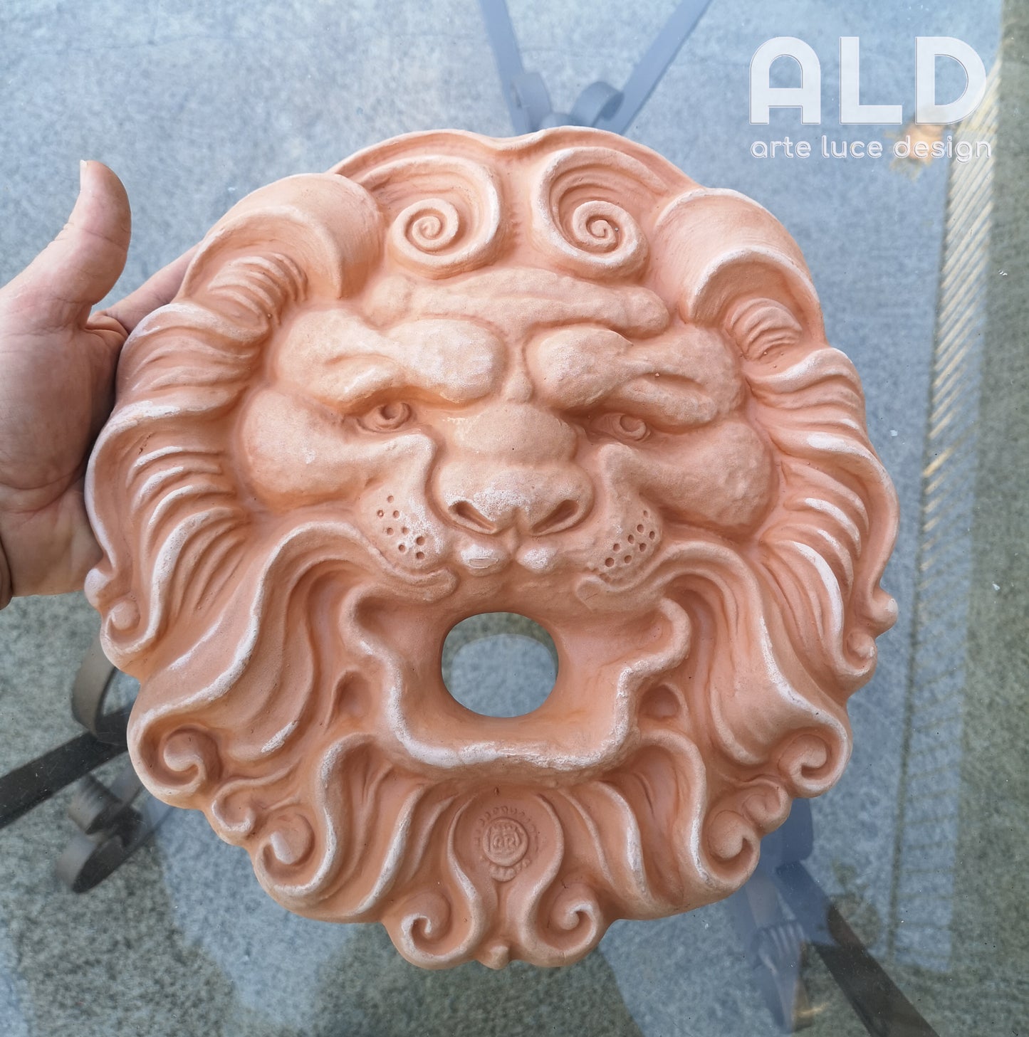 ALD ti propone in questa inserzione... Testa di leone in terracotta grezza, ideale come decorazione murale o da installare in una fontana.