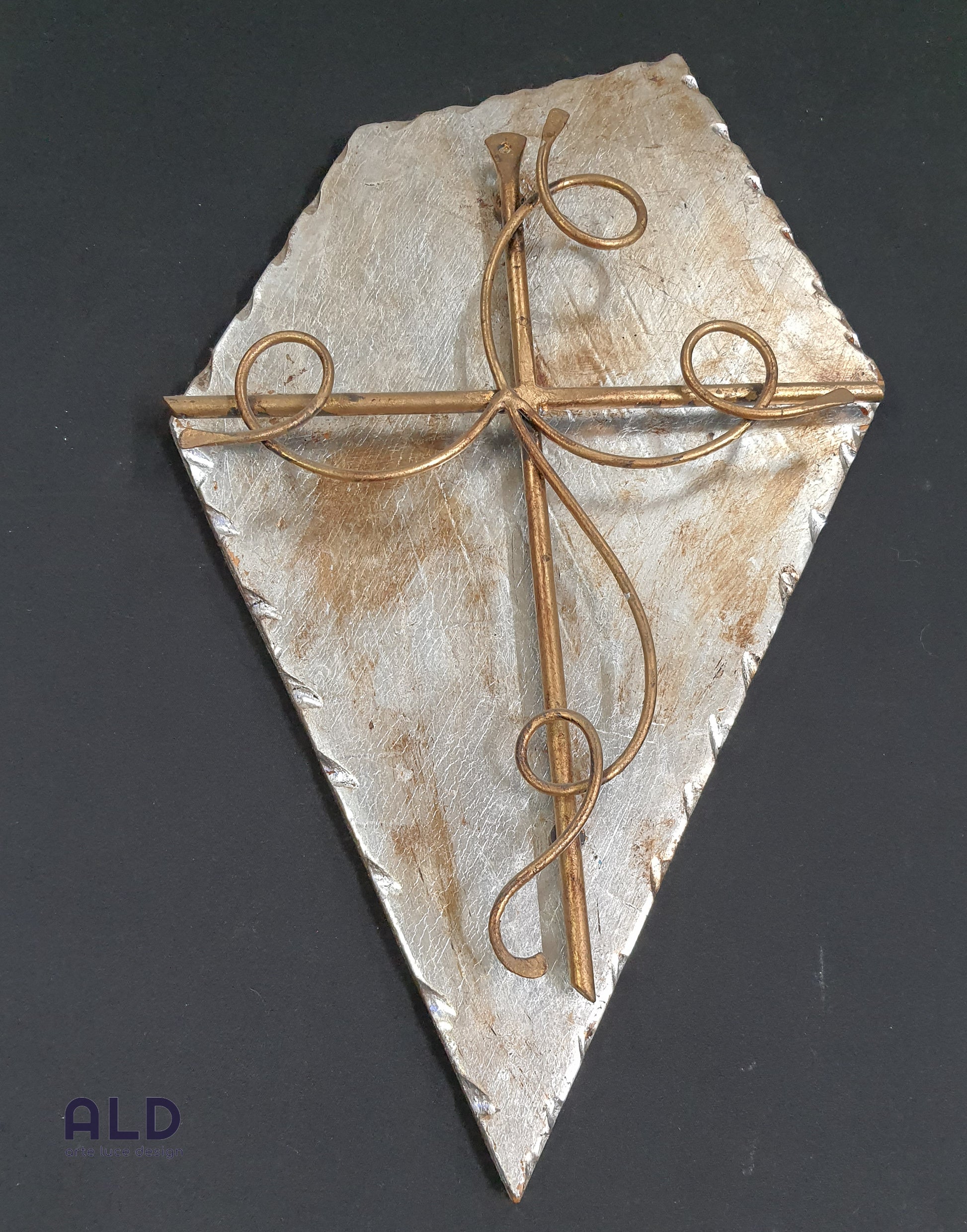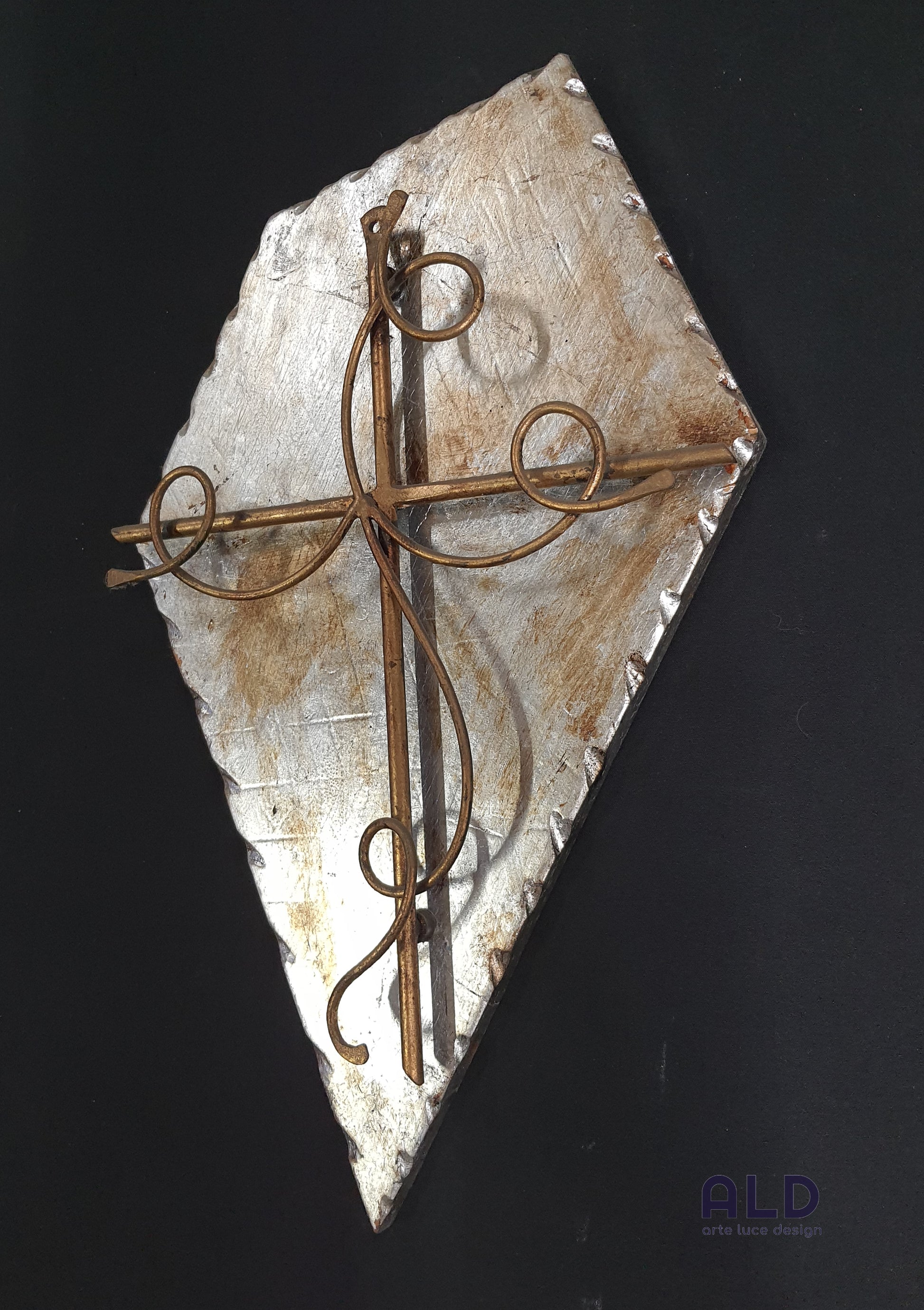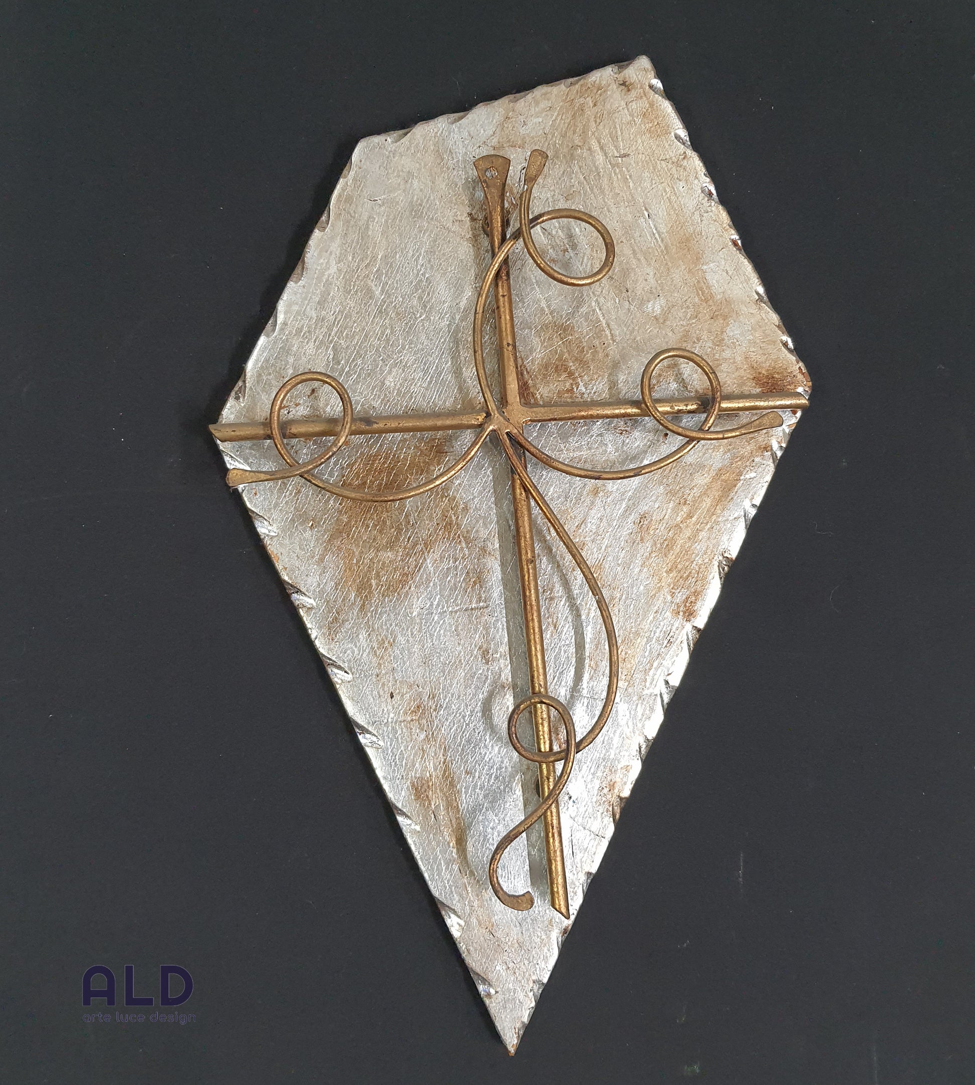ALD proponiamo per te.. Crocifisso stilizzato in metallo oro su base in legno colore argento realizzato dai nostri migliori artigiani con materiali rigorosamente made in Italy. Ideale per la tua camera da letto se cerchi qualcosa di alterativo rispetto al solito capezzale classico.