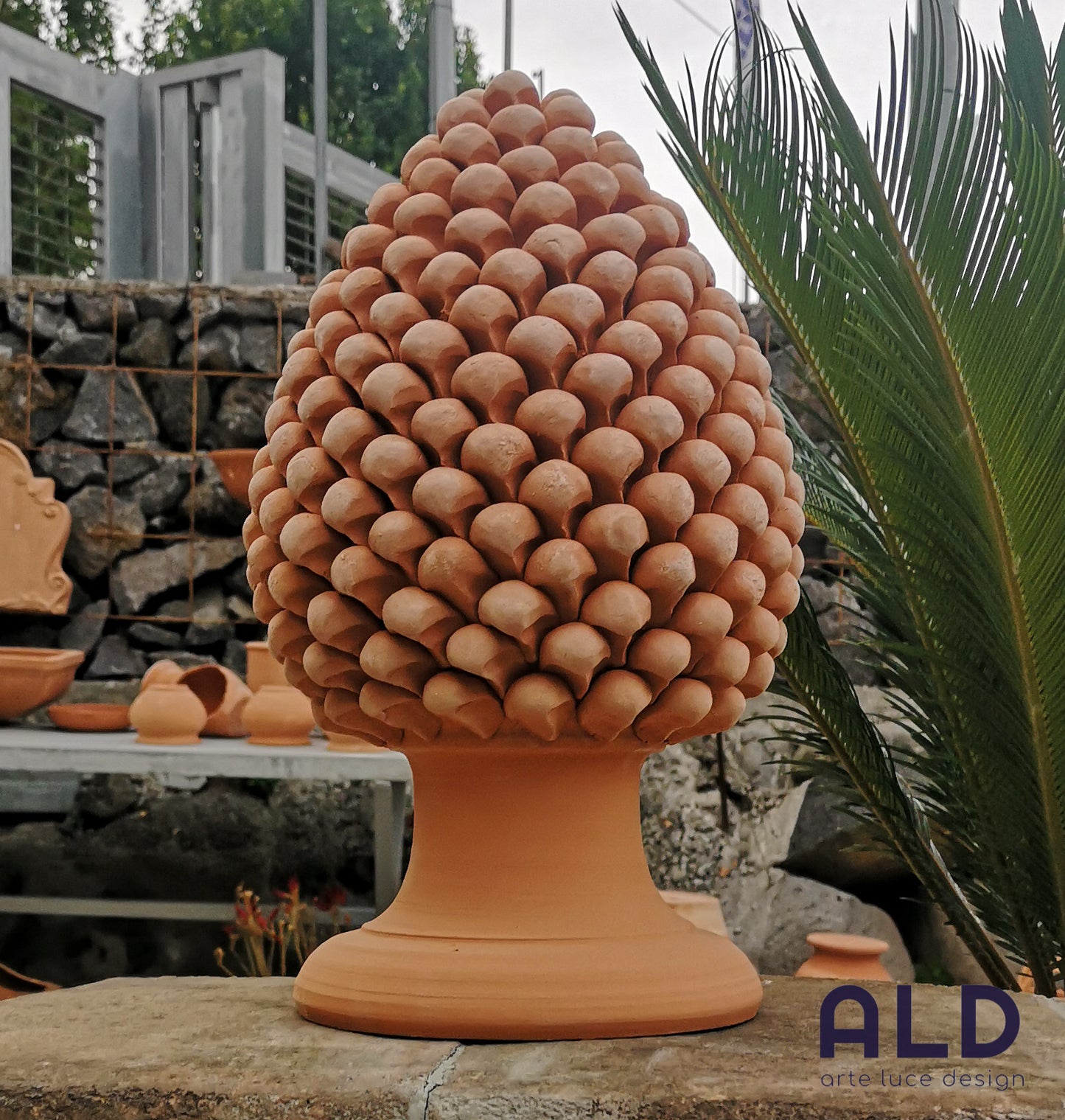 Pigna grande in terracotta siciliana soprammobile da giardino portafortuna