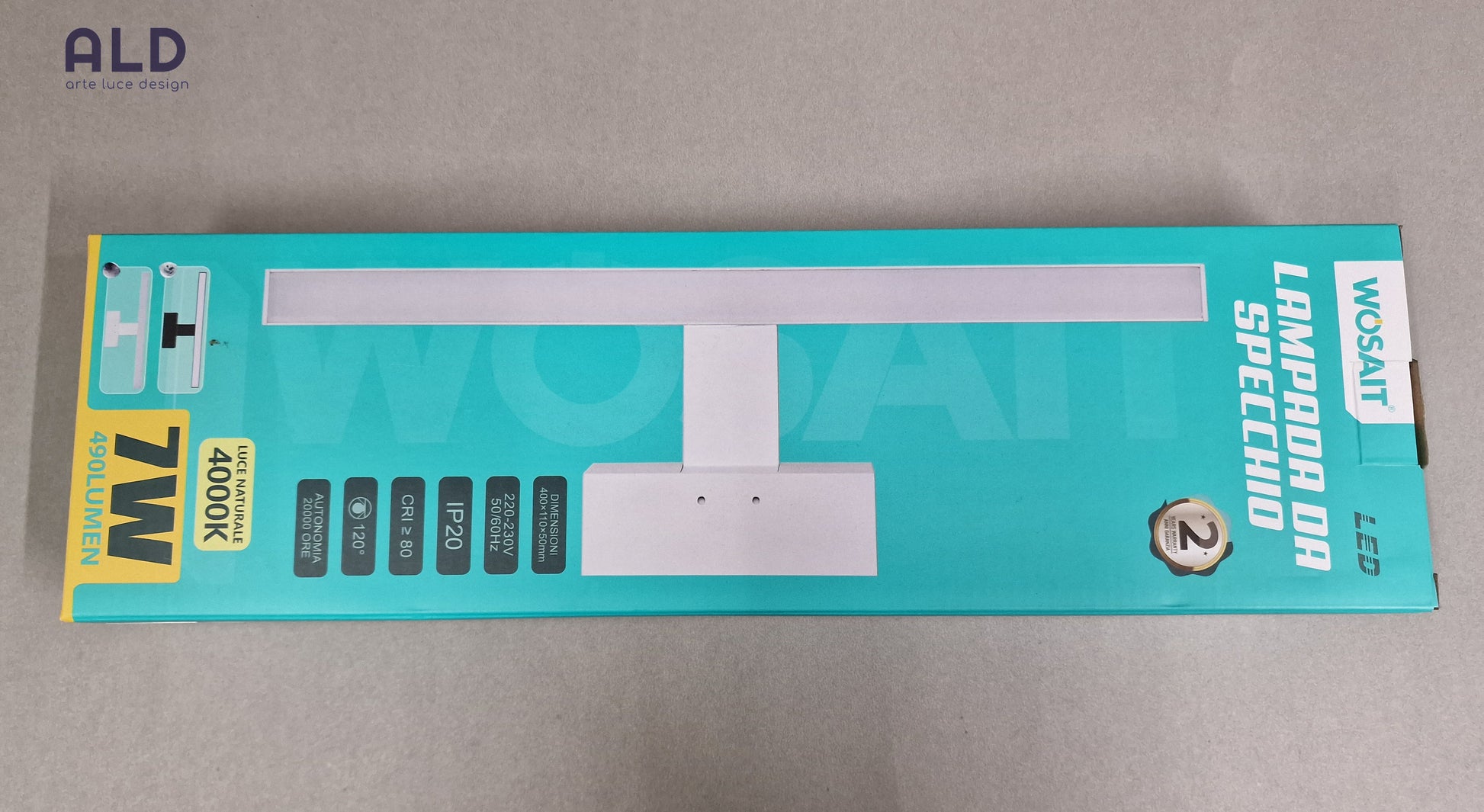 Lampada led per specchio da bagno dal design moderno. Ottima resa luminosa grazie ai suoi 7w che coprono un fascio di luce di 120° e di semplice installazione.