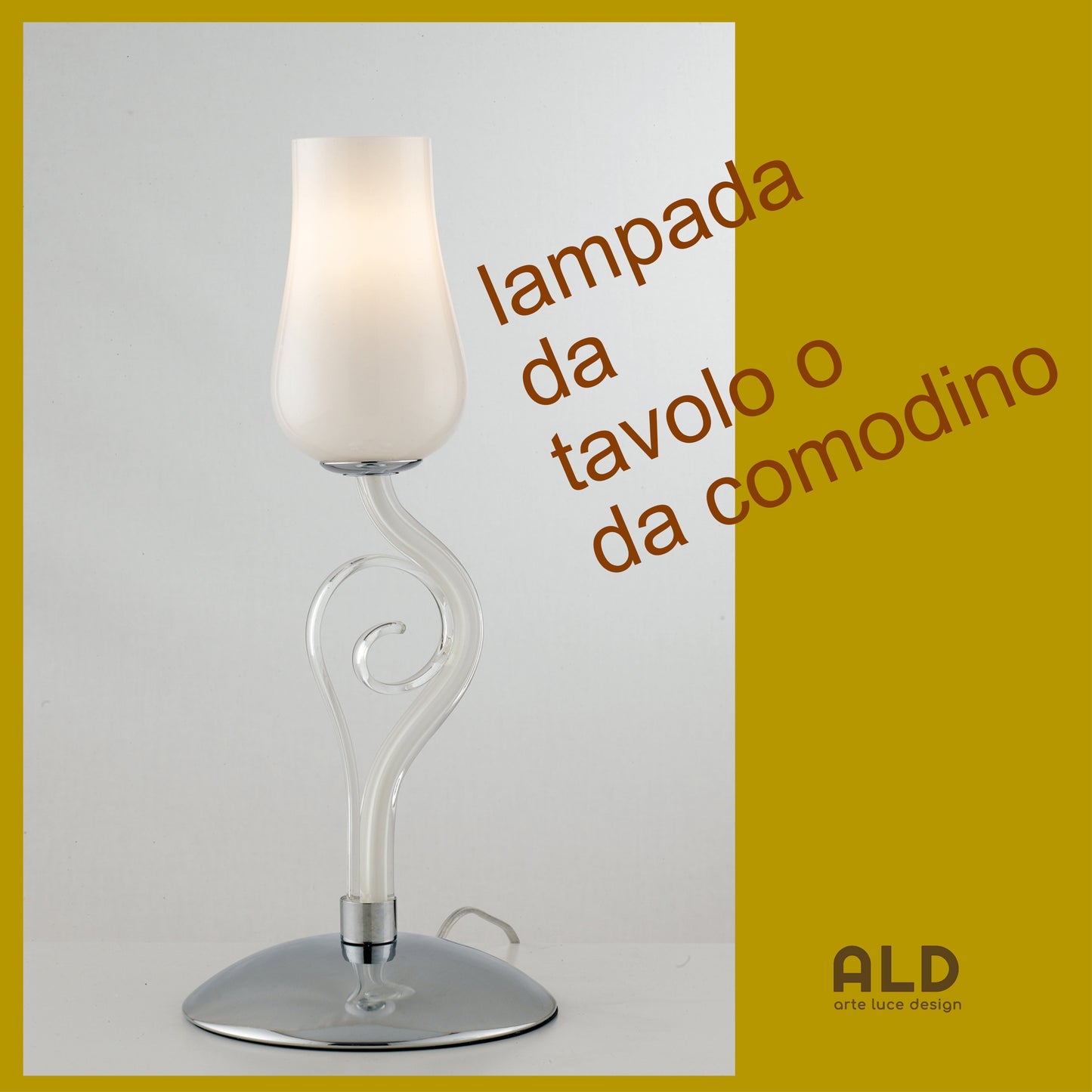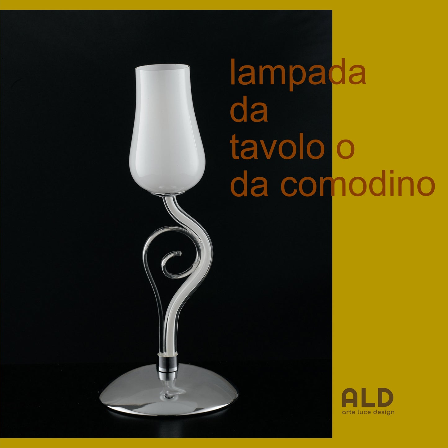 Benvenuto nella descrizione di : Lampada da tavolo in vetro e metallo segue le dimensioni : altezza: 43cm larghezza:18cm 1 luci attacco E14 supporta lampadina a LED (lampadina non inclusa) Colori :base in metallo cromato, struttura in pasta di vetro soffiato trasparente, paralume in vetro bianco.