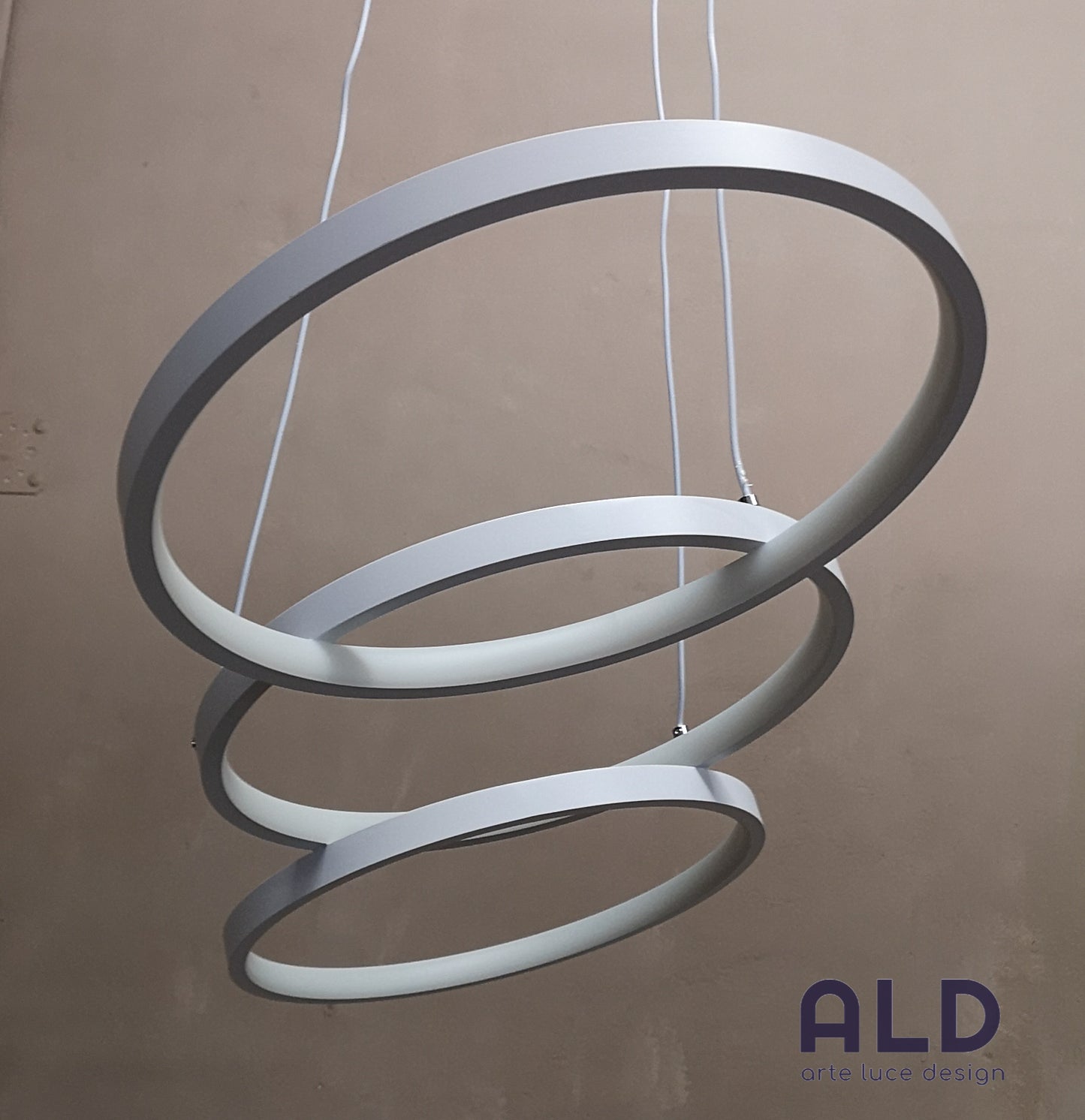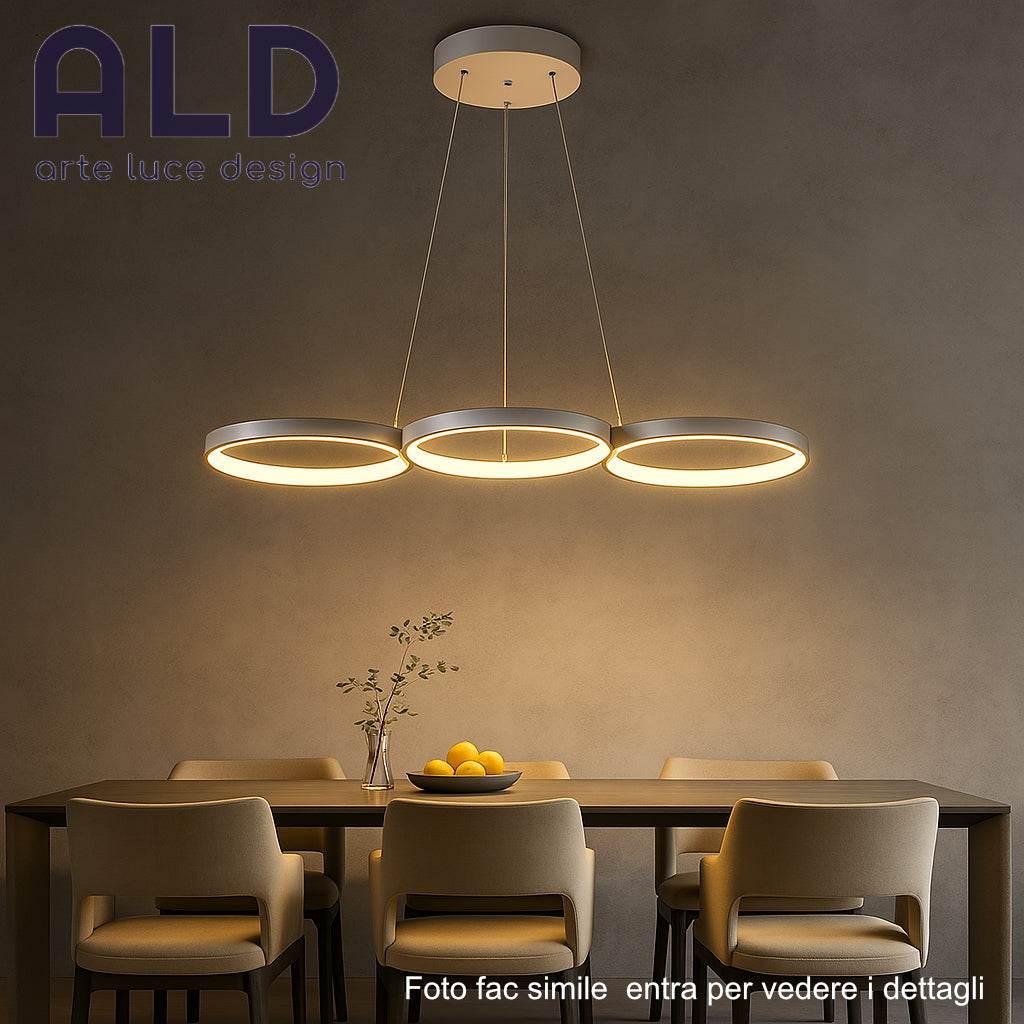 Sospensione led a 3 cerchi lampadario moderno 45w 3 tonalità di luce per salone