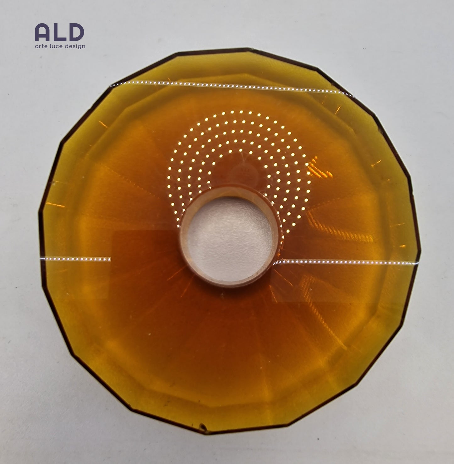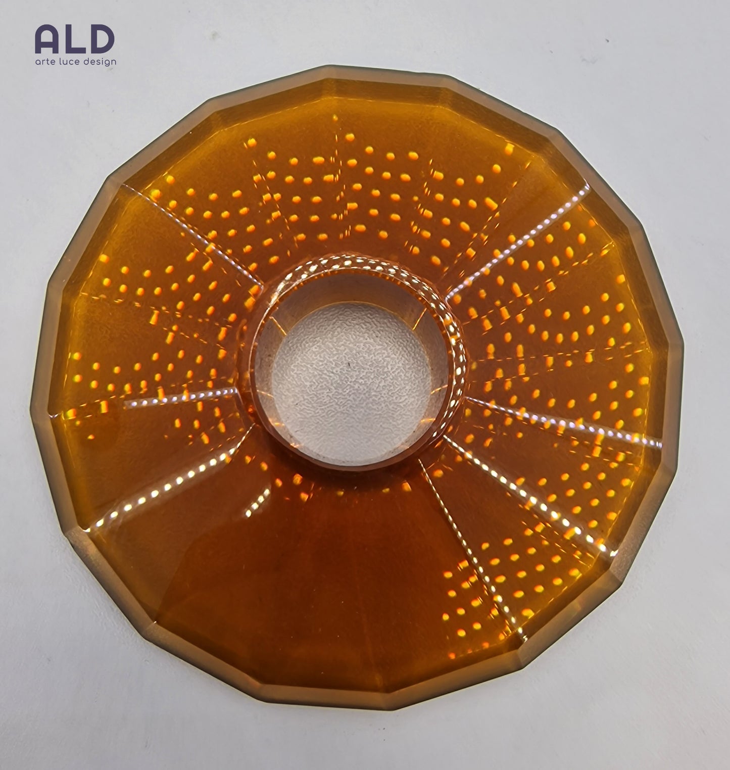 ALD propone per te in questa inserzione... Bobeche in vetro cristallo di colore ambra modello pentadecagono con lavorazione interna a ventaglio.