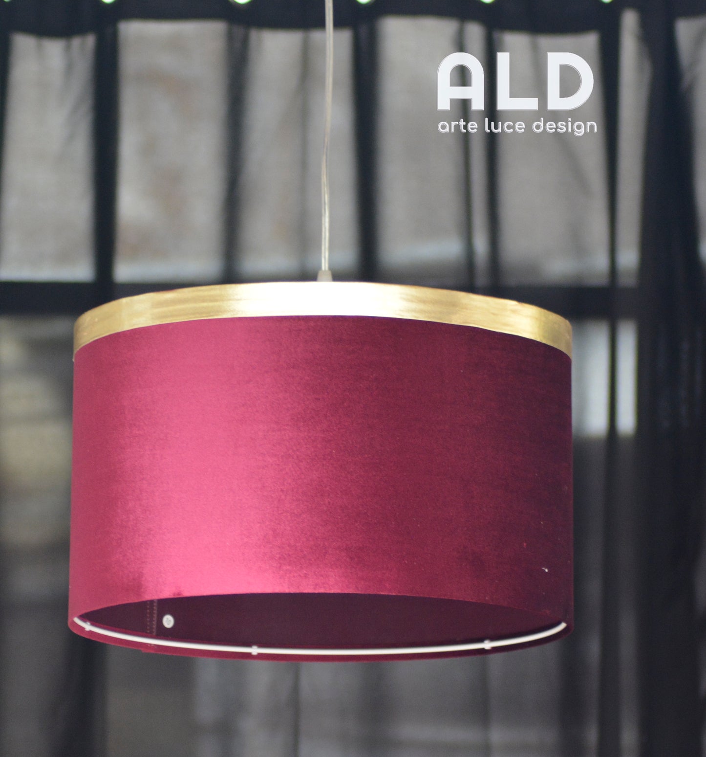 - colore paralume bordeaux effetto camoscio, bordino superiore in oro lucido