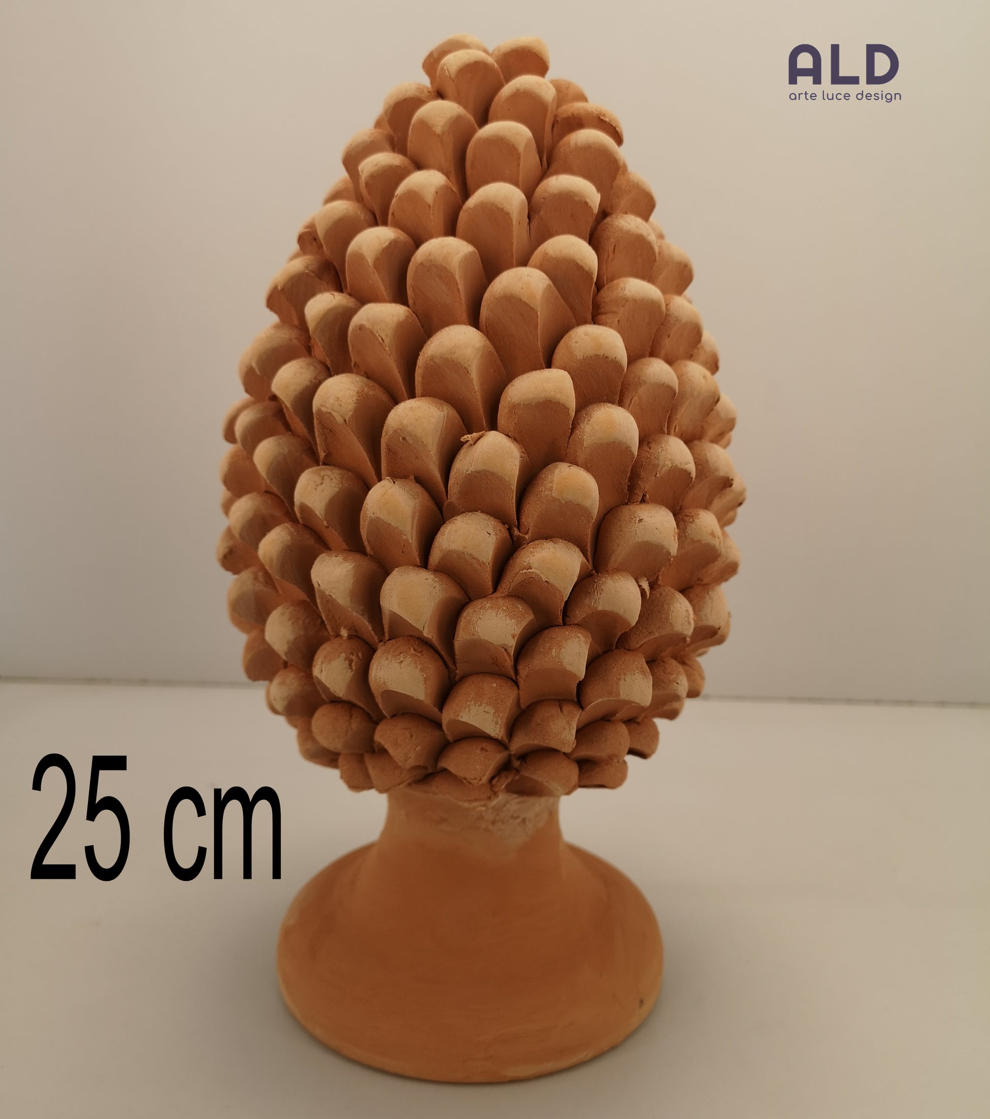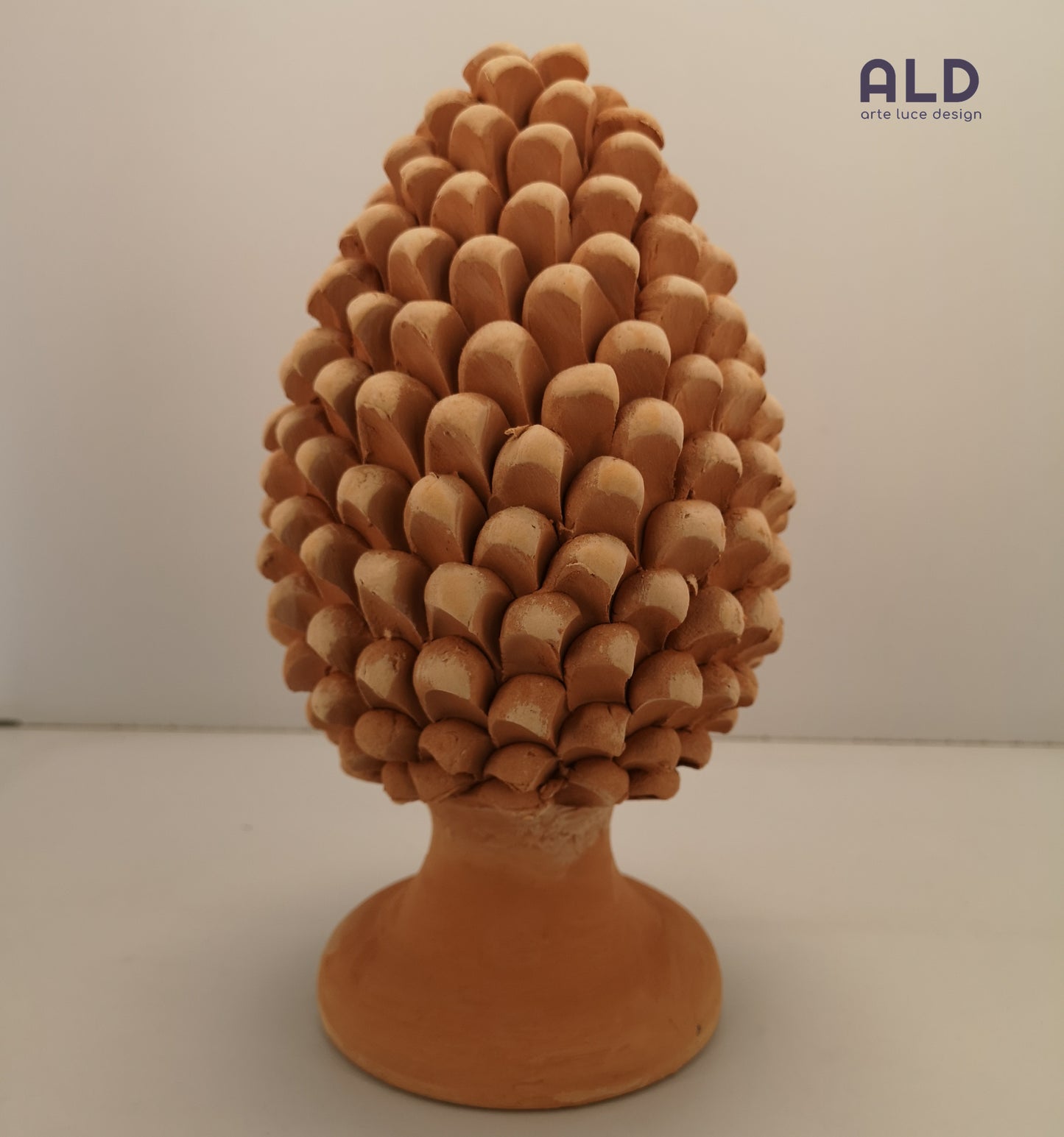 ALD propone per te in questa inserzione... Pigna soprammobile in terracotta rossa grezza. Da sempre la Pigna è sinonimo di fortuna, prosperità e ricchezza... ideale come regalo da esporre nei tuoi ambienti interni ed esterni. questa pigna è stata realizzata da maestri artigiani, prima tornita e poi spicchio dopo spicchio sovrapposti per arrivare al risultato finale, a tal moritivo tutte le differenze fra uno e l'altro sono a garanzia della fattura artigianale, si potrebbero evidenziare alche leggere differenze di misure, sempre grazie alla lavorazione artigianale.