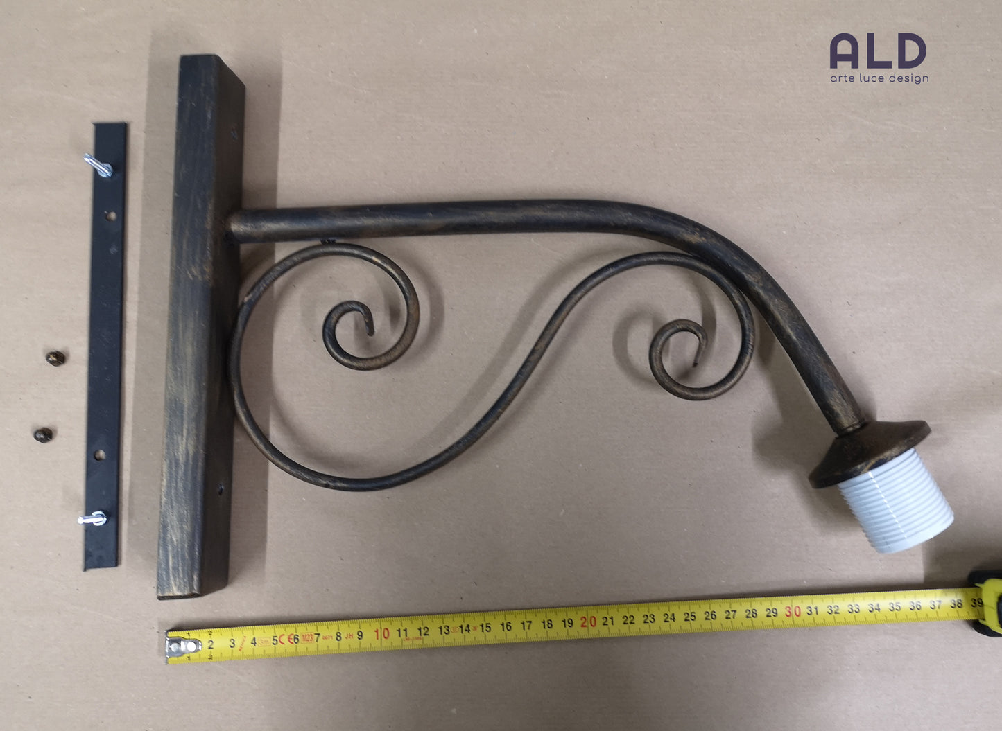 ALD propone per te in questa inserzione... Applique a braccio artigianale in metallo colore marrone testa di moro invecchiato ad una luce attacco E27, accostato ad un piatto in Ceramica di Caltagirone rotondo traforato con lavorazione ondulata. Essendo un prodotto artigianale risulta sprovvisto di certificazione IP, pertanto si consiglia l'installazione in aree parzialmente riparate.