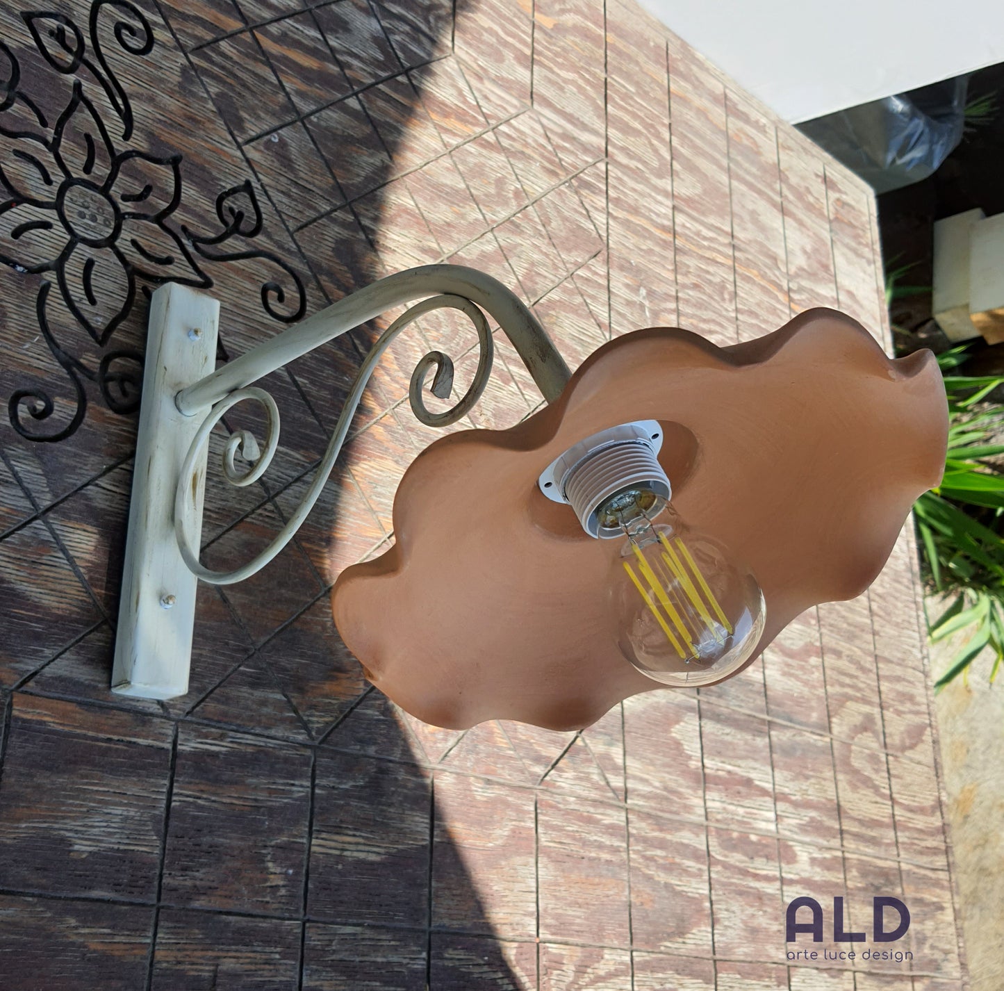 Applique da esterno a braccio con piatto in terracotta lampada da giardino E27