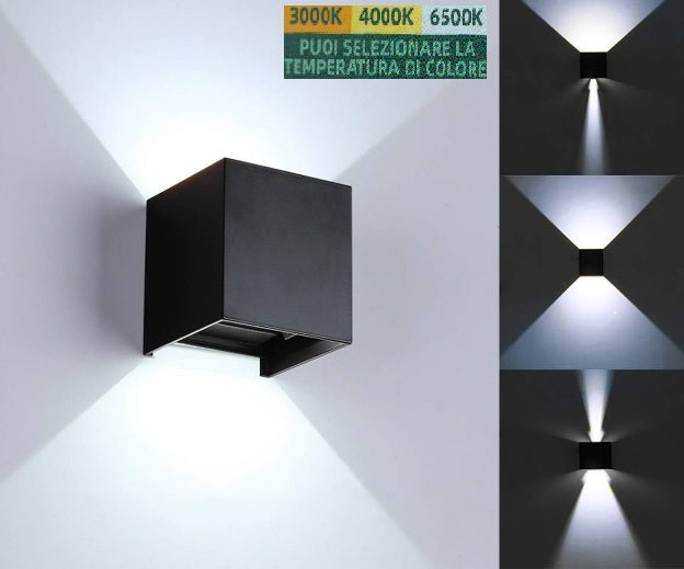 Applique led nero lampada da parete IP65 a doppia emissione di luce 12w 3c