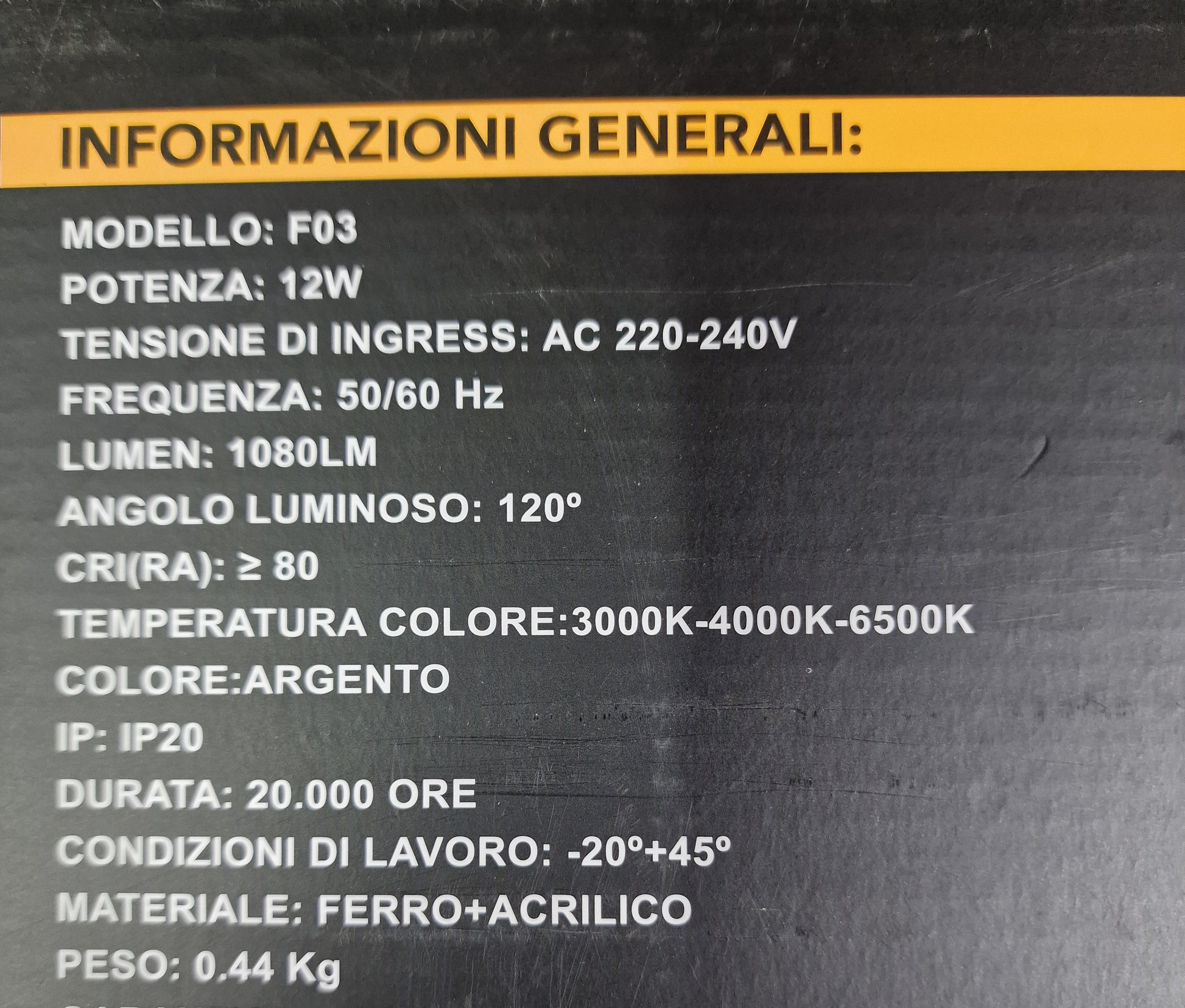 -3 tonalità di luce selezionabile cct (3000k, 4000k, 6500k)