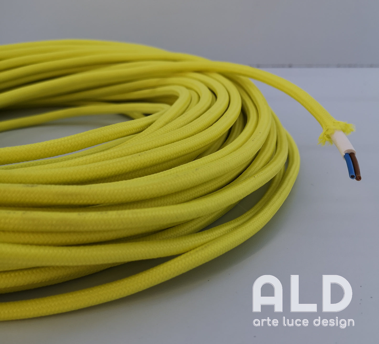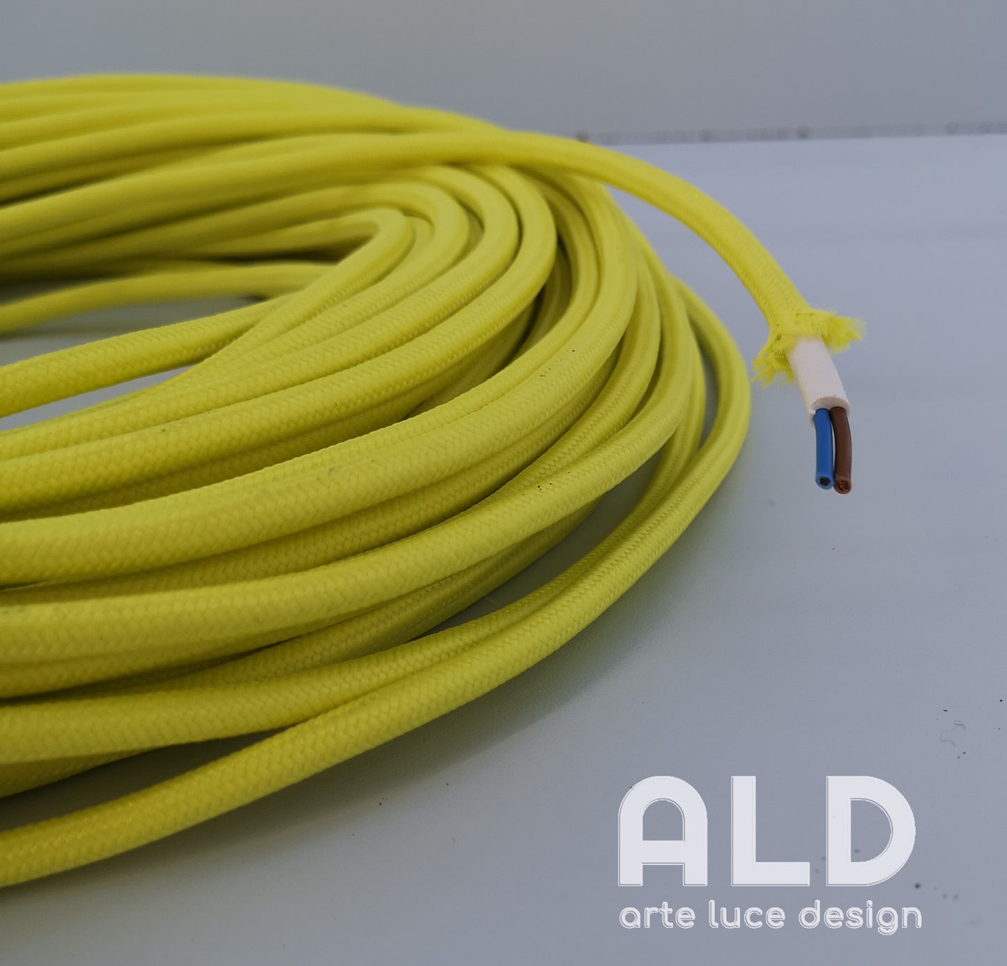 -Noi di ALD proponiamo per te! Cavo bipolare da 1,5mm foderato in tessuto di colore giallo ideale per dare nuova vita ai tuoi corpi illuminanti cambiando i cavi se danneggiati o usurati dal tempo o se vuoi ravvivare i tuoi ambienti cambiando in colore ai cavi delle tue sospensioni. Colori del tessuto accesi e brillanti ideali per una cameretta, una cucina un ufficio e persino un locale commerciale.
