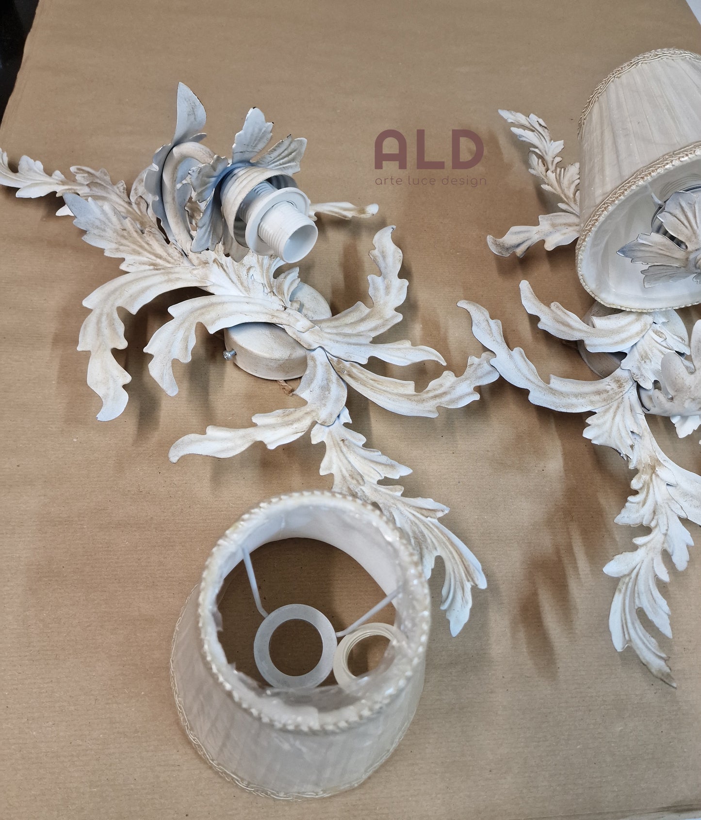ALD propone per te.. Coppia di applique in ferro battuto realizzato dai nostri migliori artigiani con materiali rigorosamente made in Italy. Lampade molto eleganti, 1 luce doneranno una nuova luce ai vostri ambienti shabby chic.