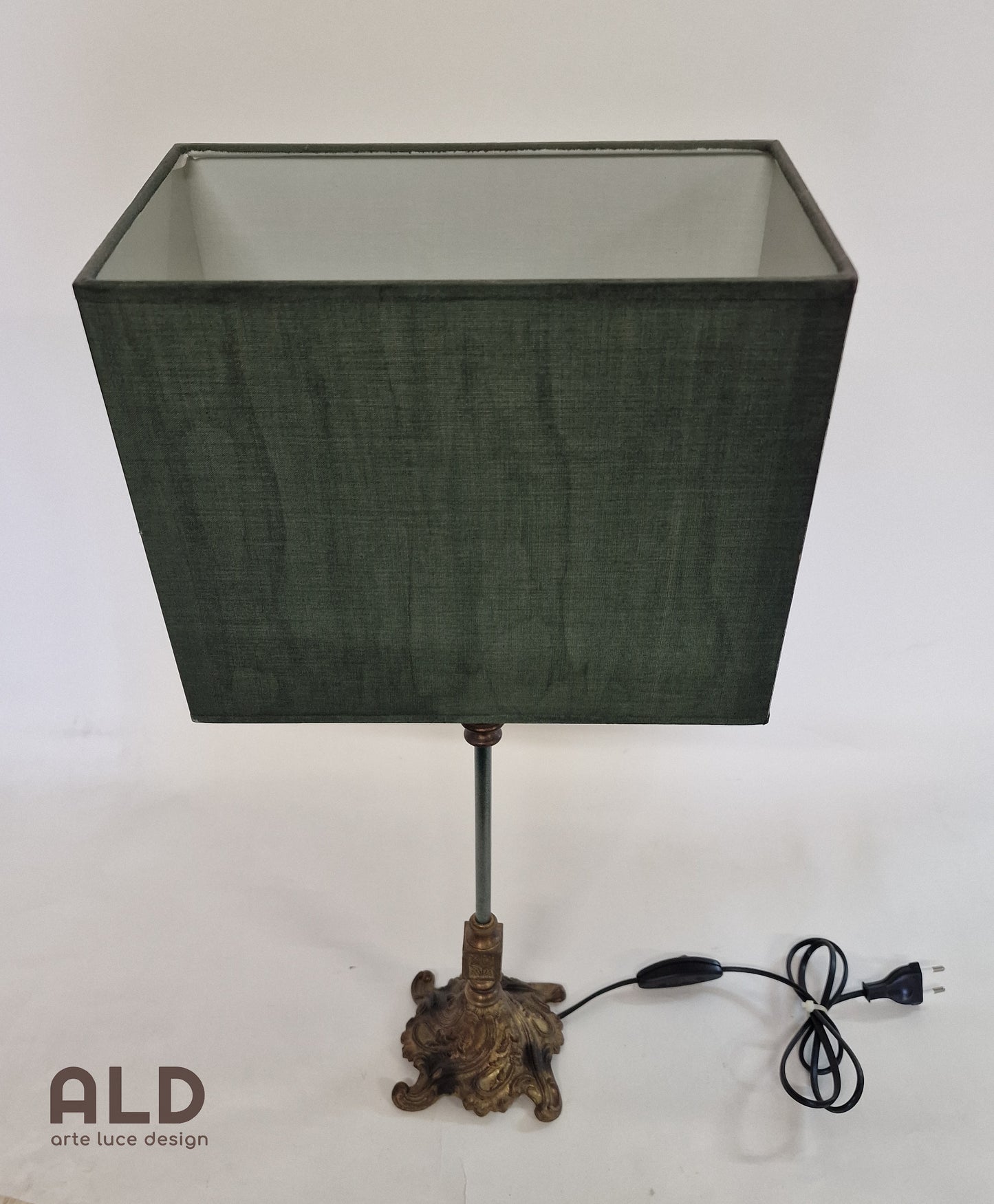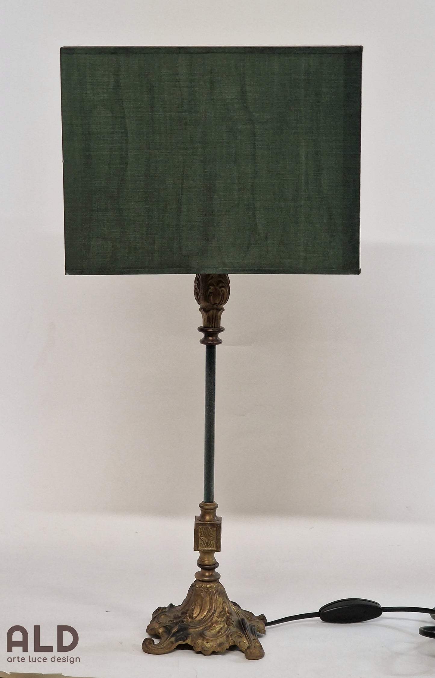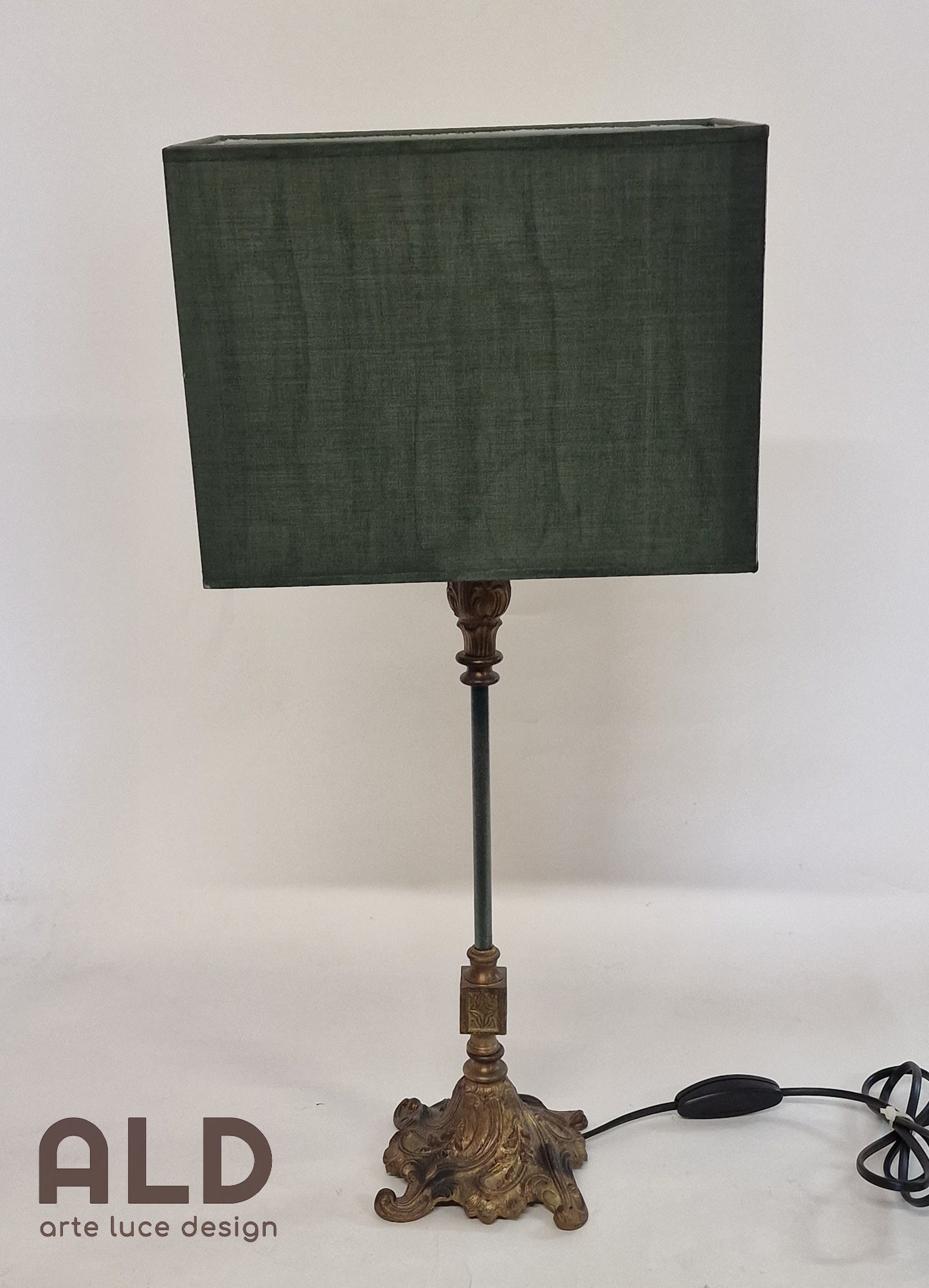 Colore: struttura in fusione ottone, paralume in verde petrolio.