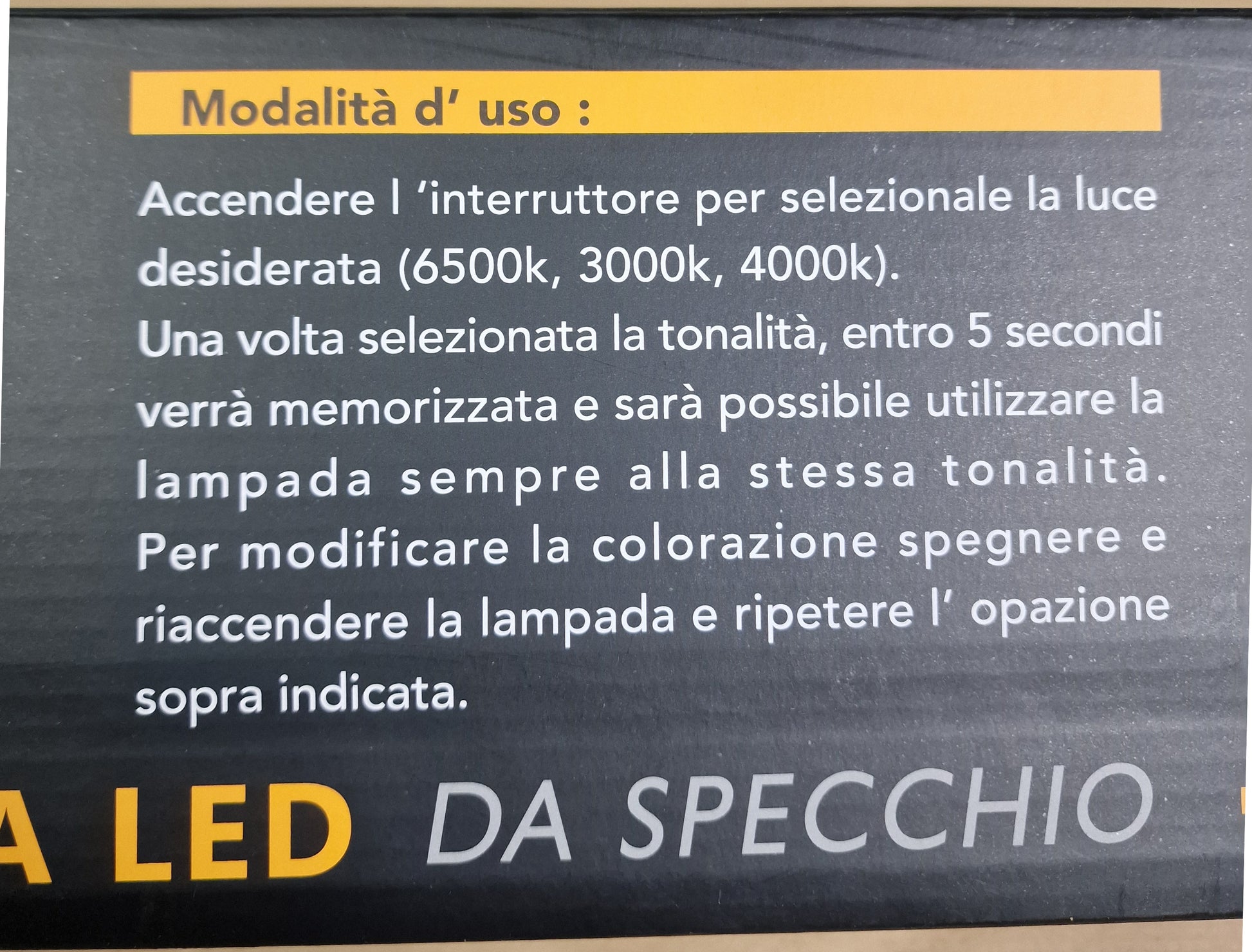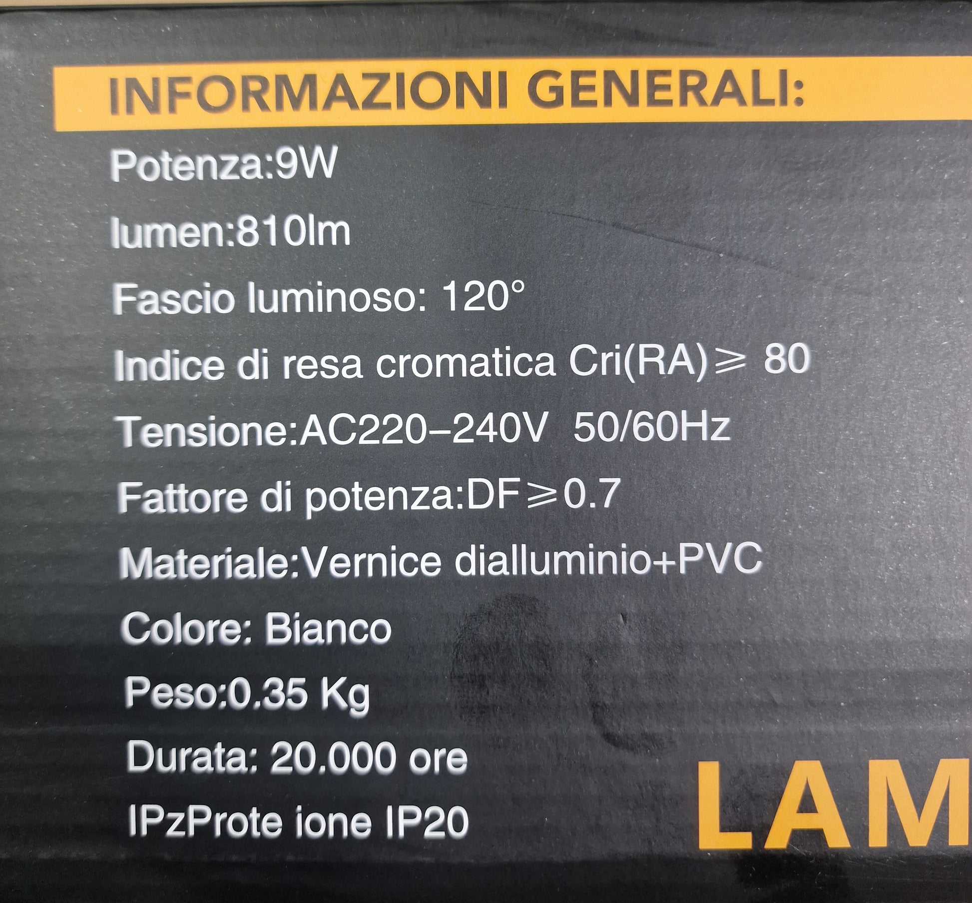 potenza 9w, 810 lm luce da 3000, 4000 a 6500 k con sistema di memorizzazione sulla luce scelta