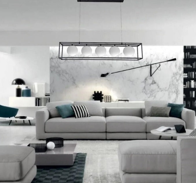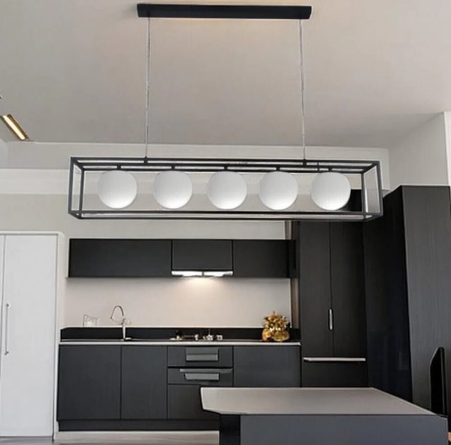 Lampadario moderno con sfere in vetro per cucina salone sospensione 5 luci g9