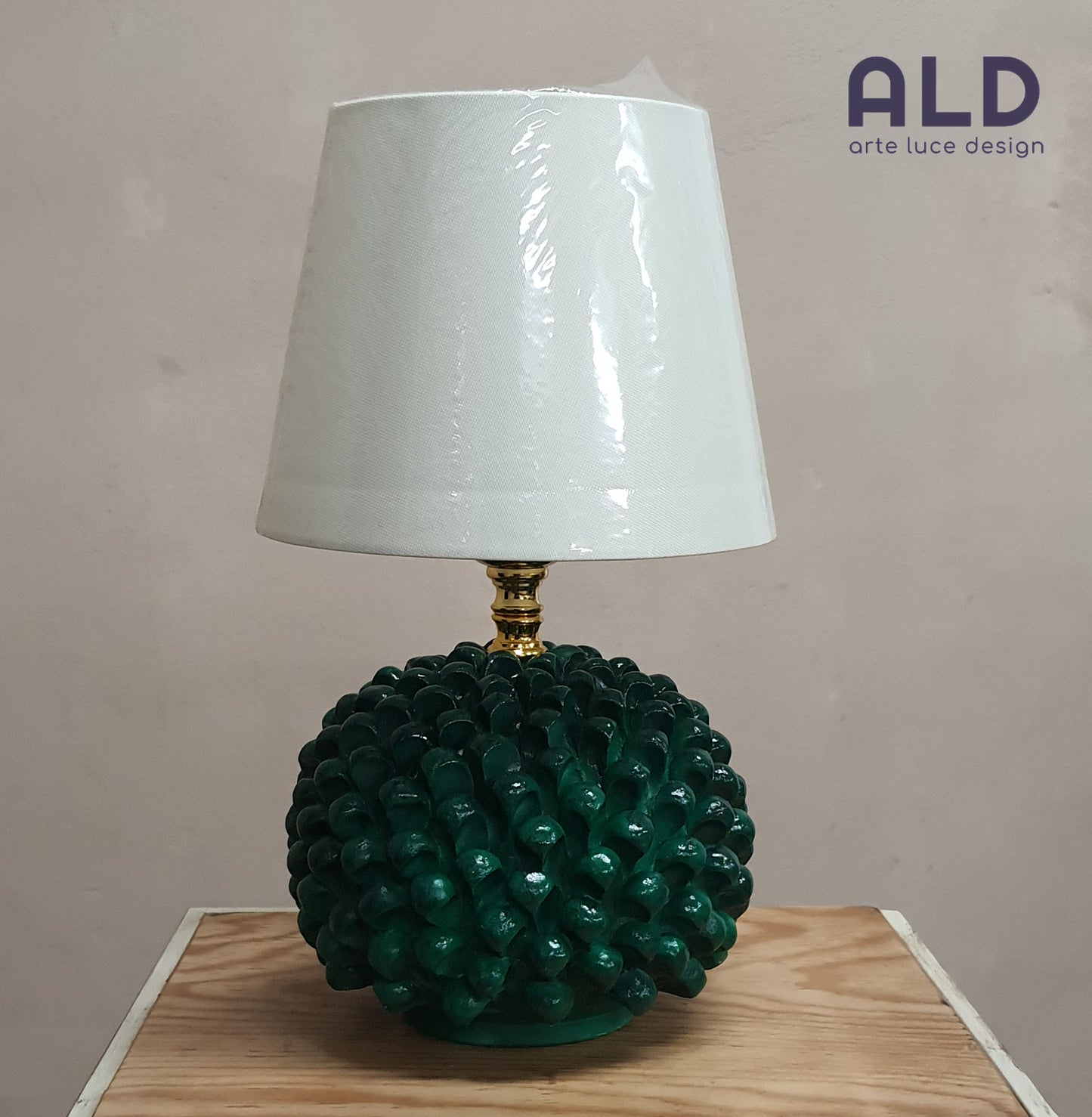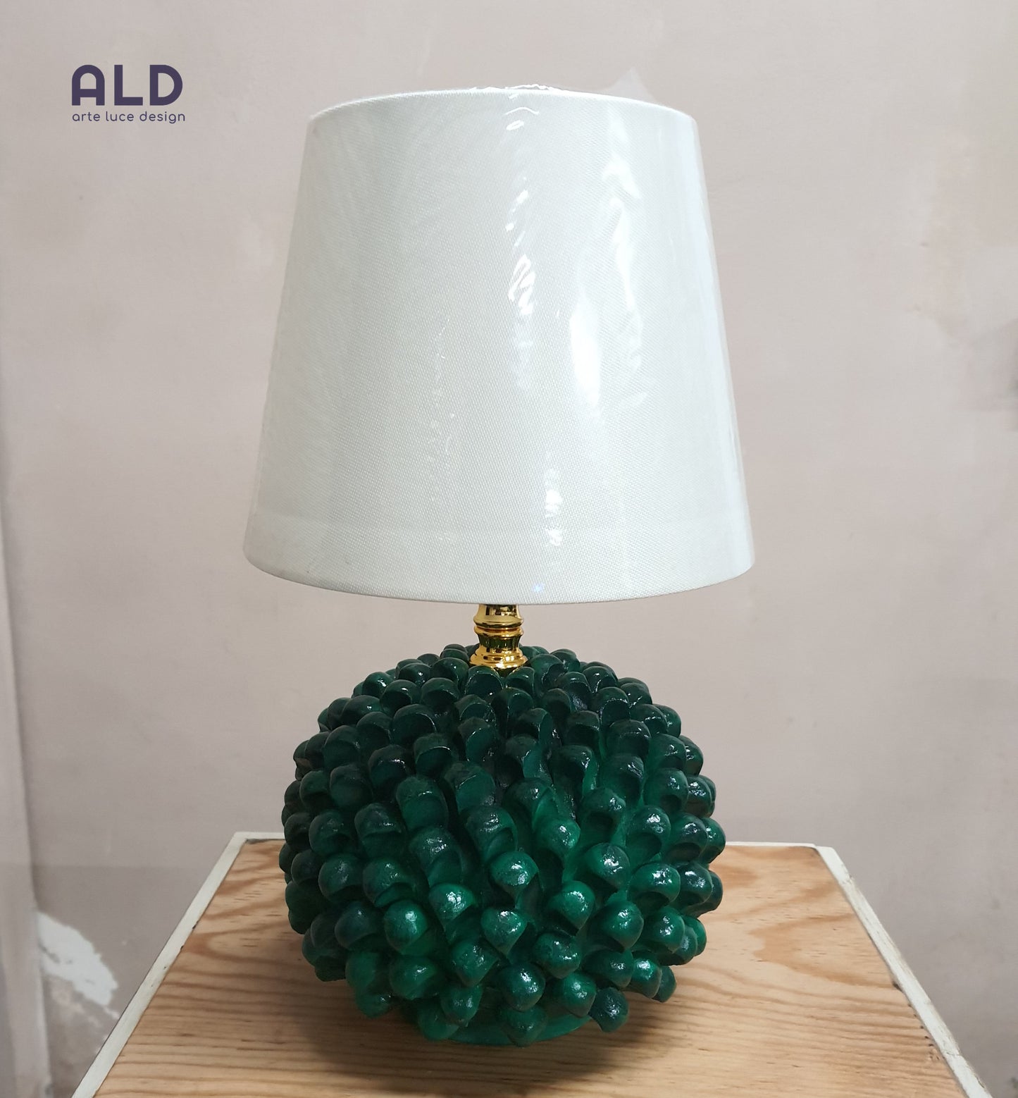 Lume da tavolo pigna soprammobile in terracotta decorata a mano lampada verde p