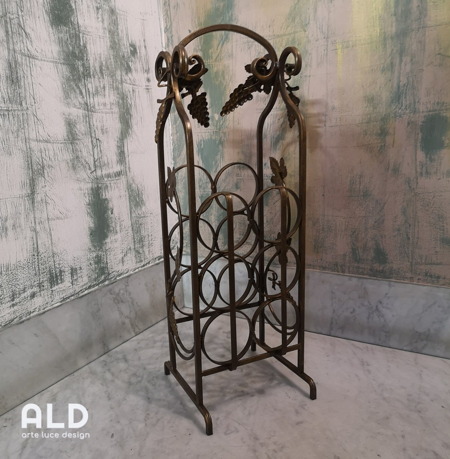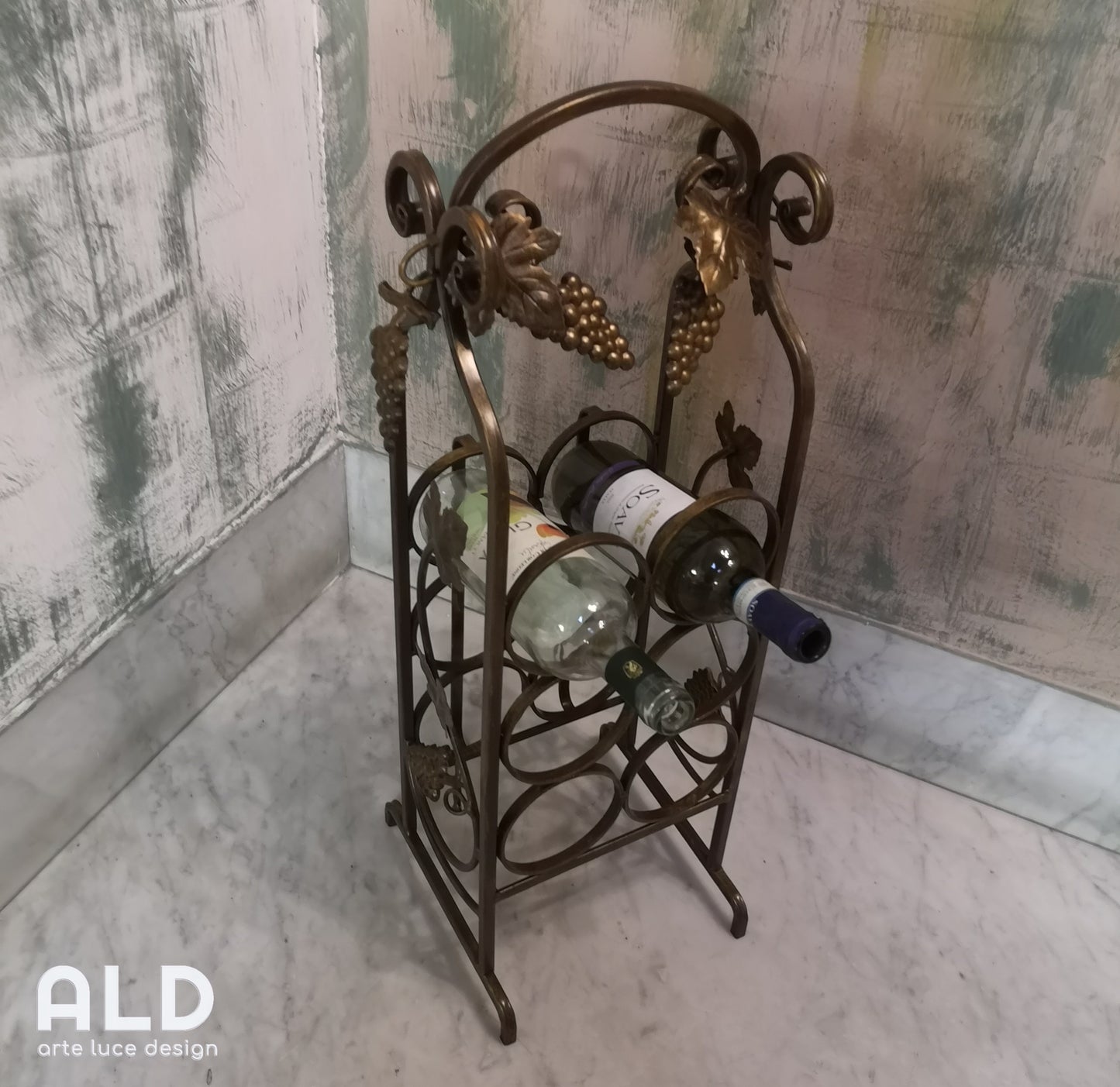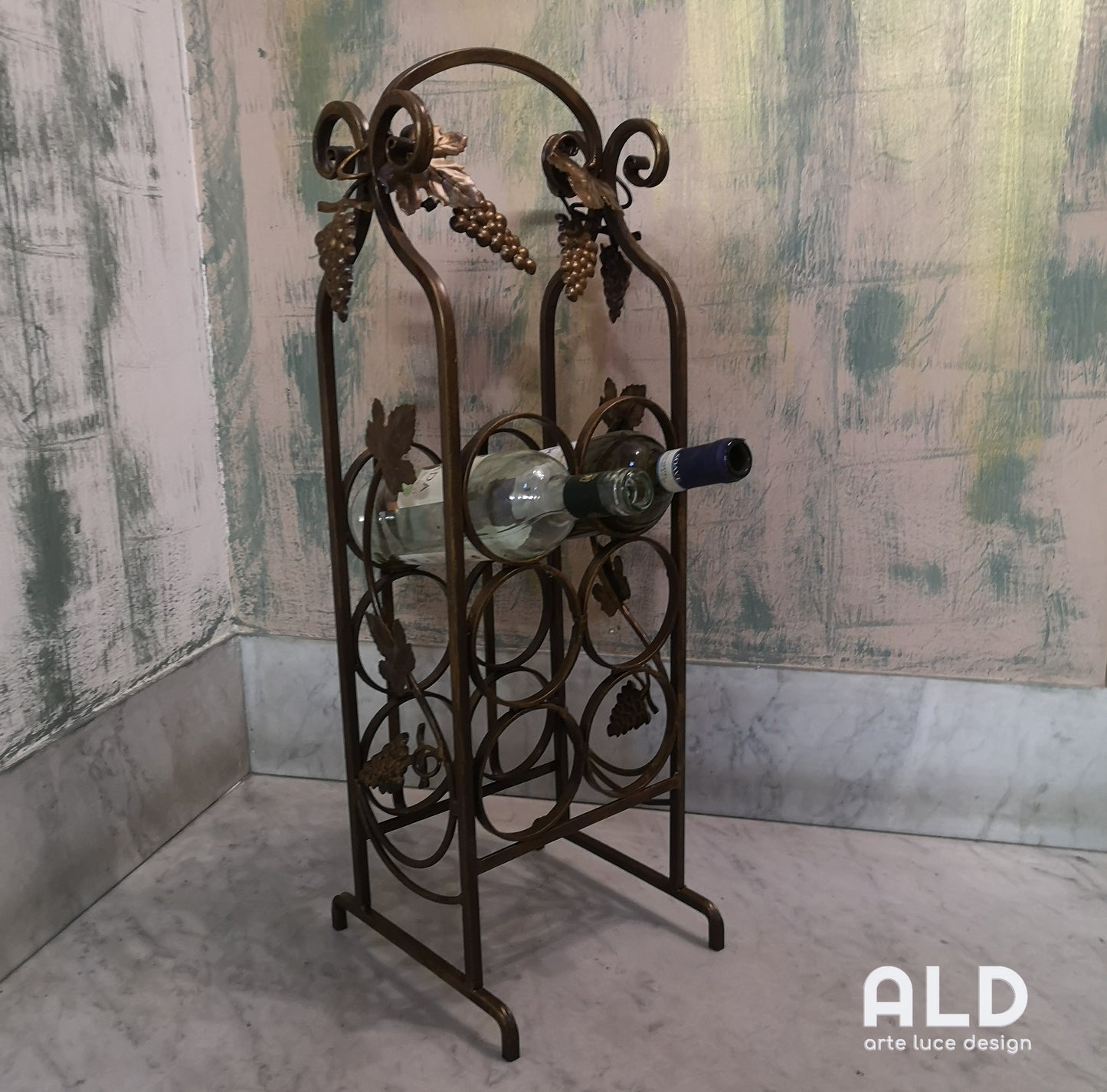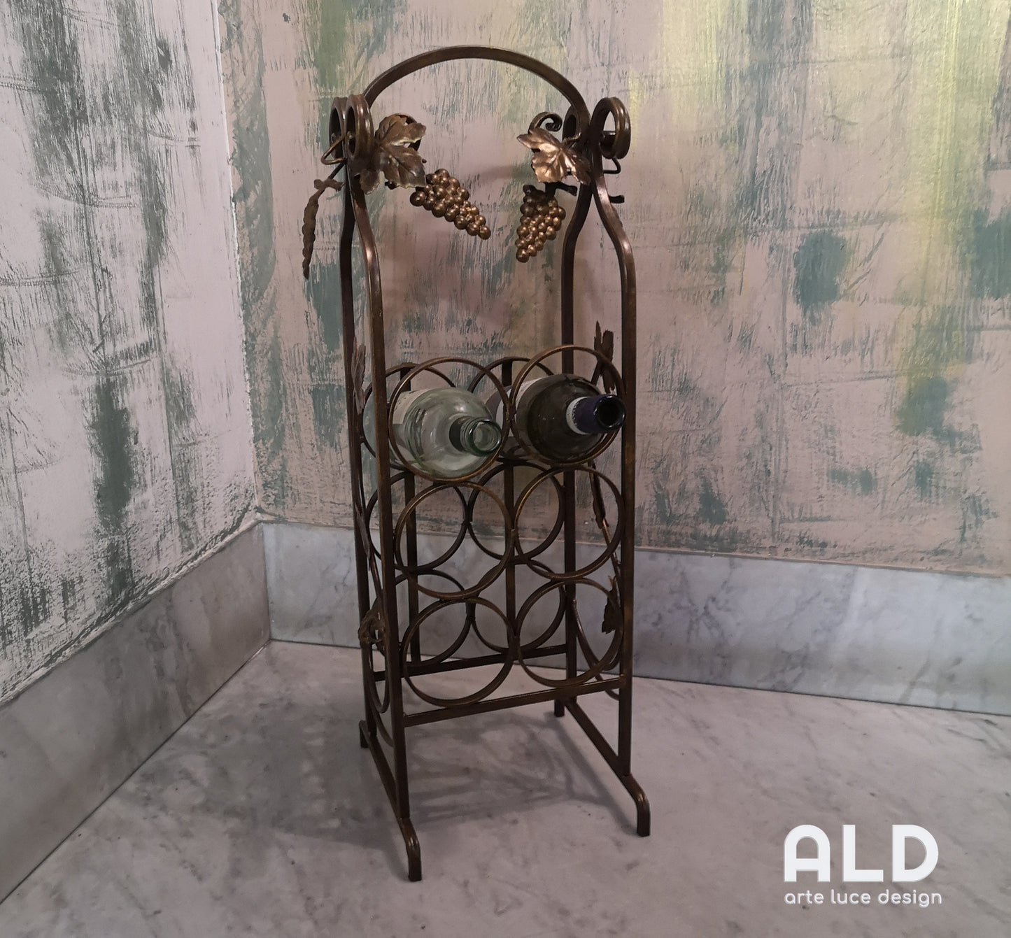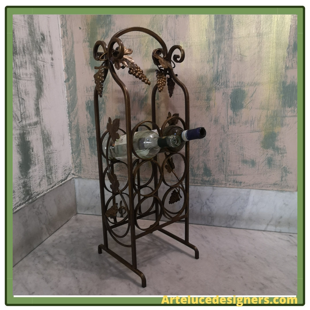 - Porta bottiglie artistico, con 6 fori per ospitare le vostre bottiglie e decorazioni in metallo lavorato e decorato a mano dai nostri artigiani che richiamano l'uva e le foglie di vita per un esperienza visiva e di esposizione senza paragoni.