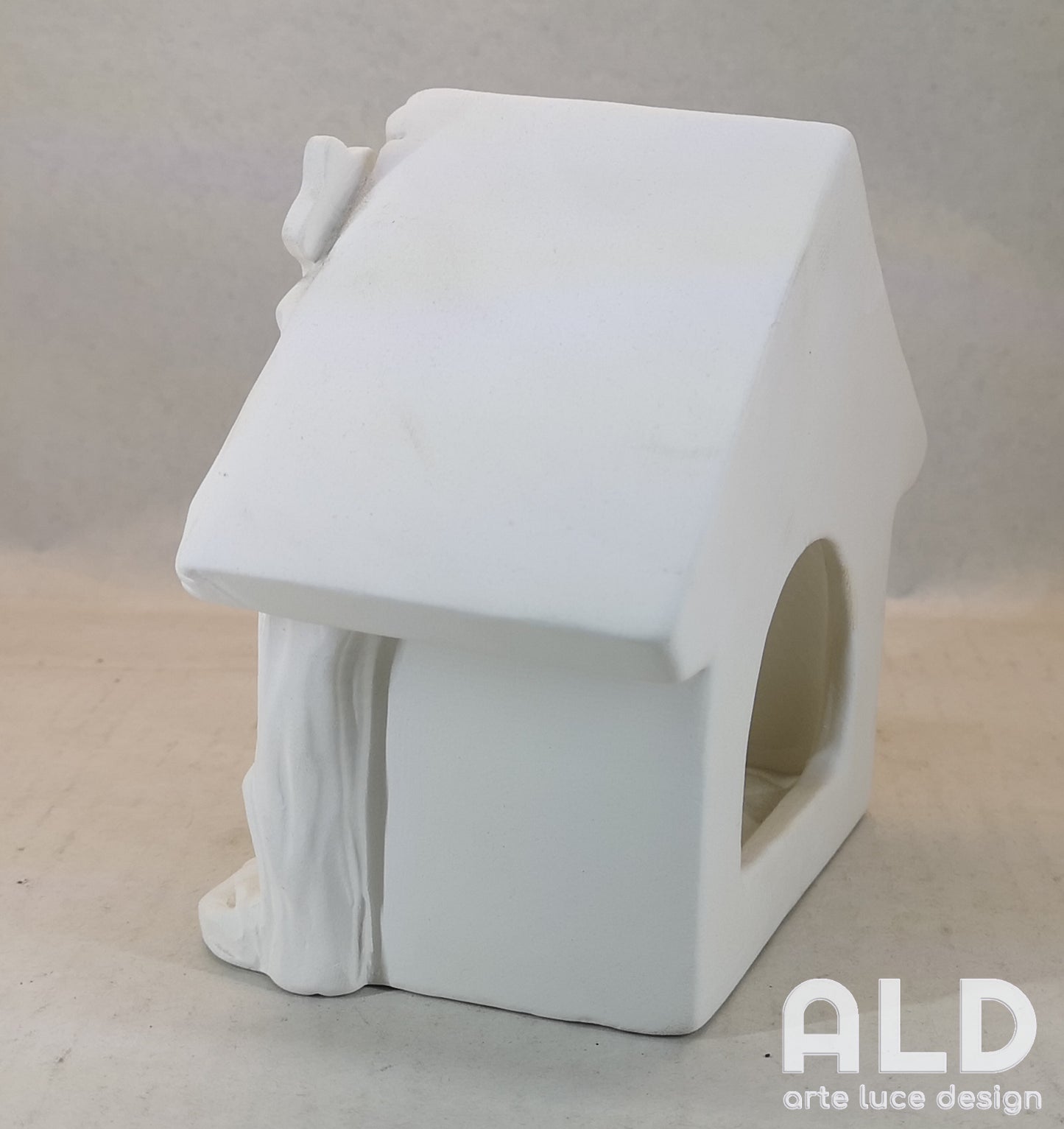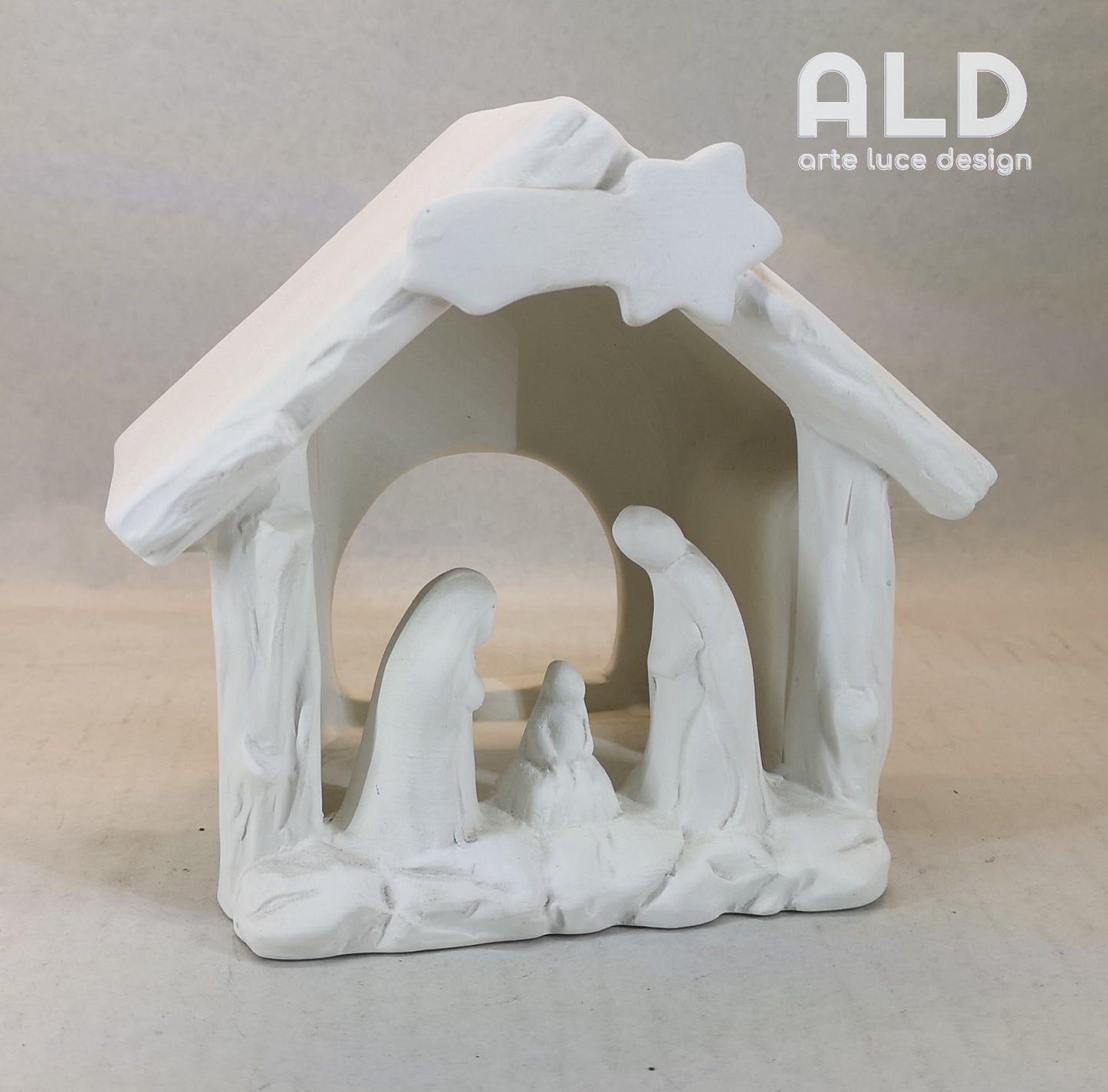 Portacandele artigianale in terracotta bianca, soprammobile a forma capanna con natività centrale che racchiude in sé tutto lo spirito del santo natale, ideale come regalo per arredare la tua casa in questi giorni di festa.