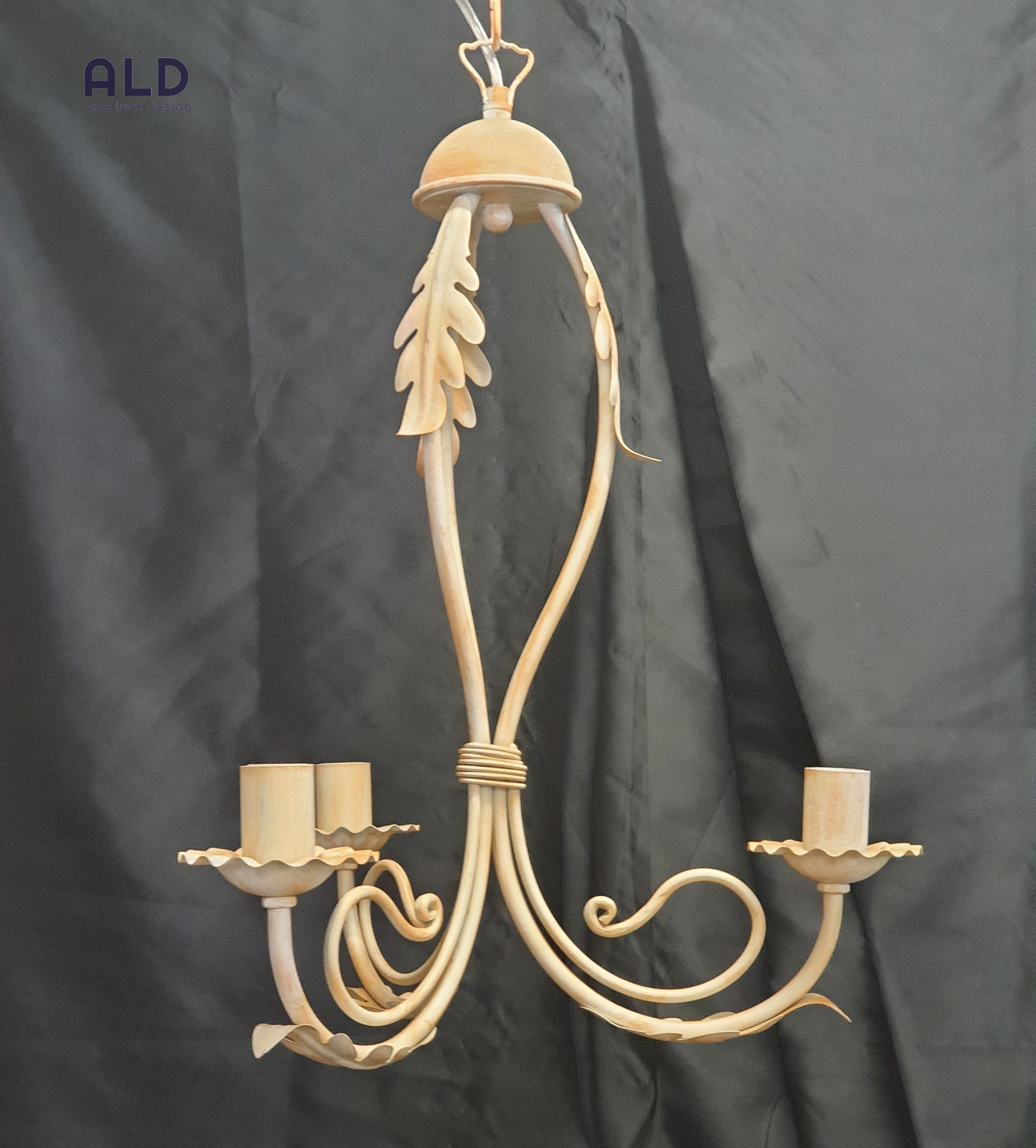 Noi di ALD proponiamo per te... Lampadario 3 luci dallo stile classico in ferro battuto avorio e oro. Realizzato dai nostri artigiani con materiali rigorosamente made in italy. Ideale per la tua camera da letto, una cameretta o un salone o dove meglio può arricchire il tuo ambiente.