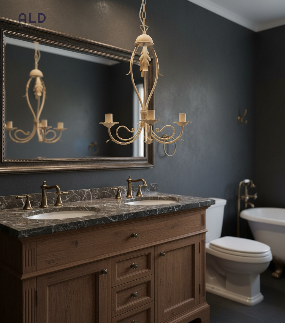 Lampadario classico in ferro battuto avorio e oro ingresso bagno 3 luci e14