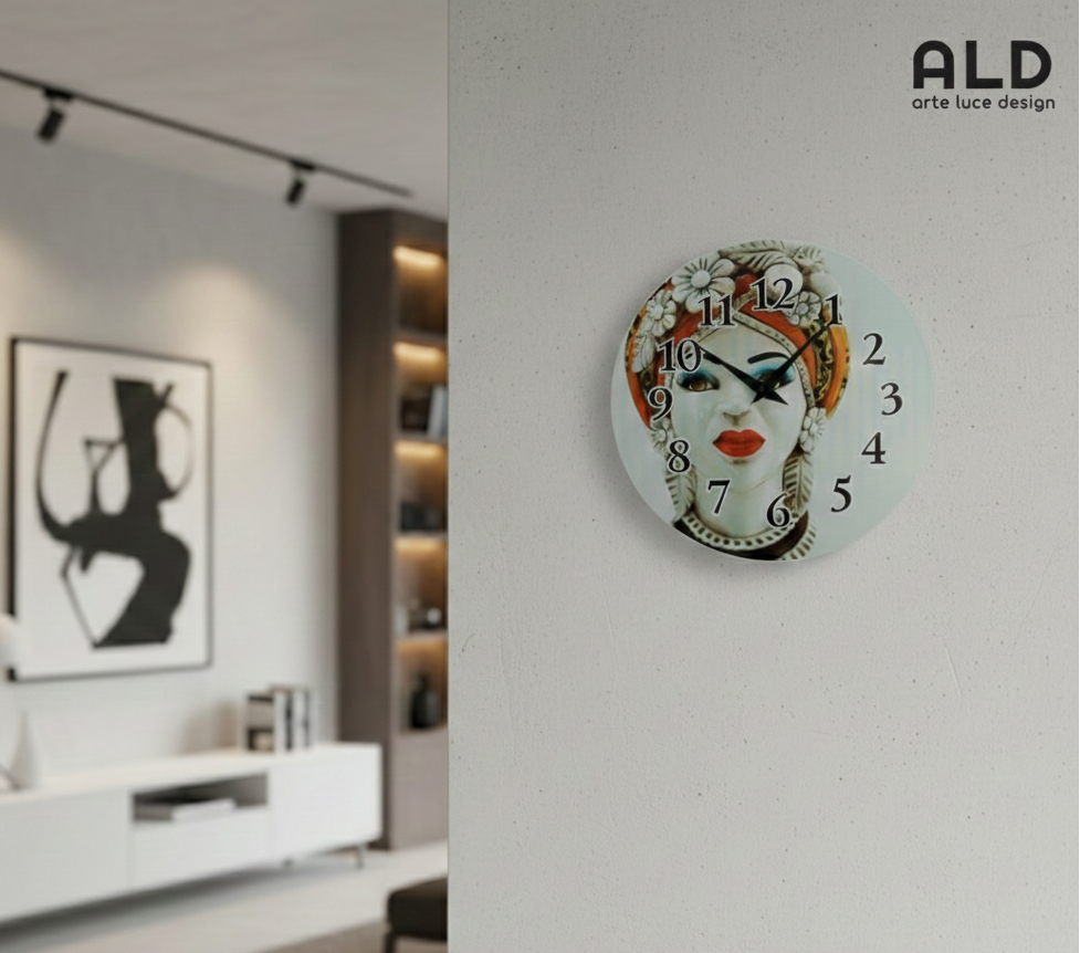Orologio da parete rotondo in stile moderno in vetro teste di moro lei Ø 32cm
