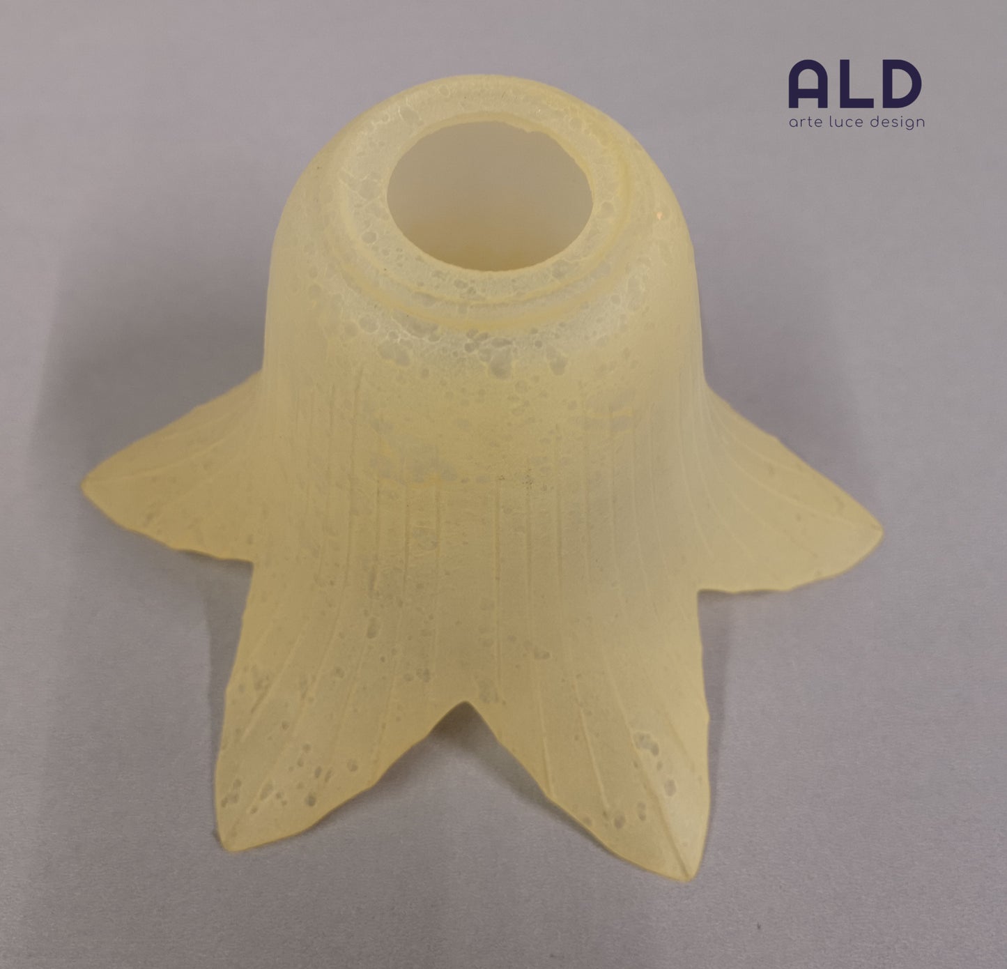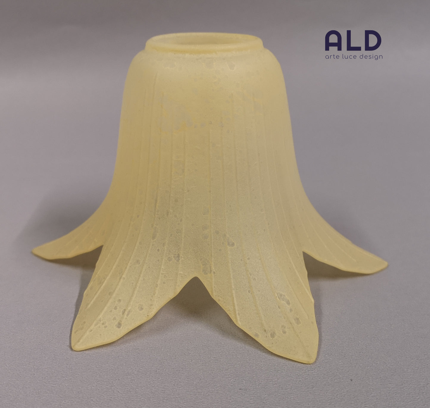 ALD propone per te in questa inserzione... Tris di bocce in vetro dalla lavorazione semplice ed elegante a 5 petali. Possono essere utilizzati praticamente su ogni supporto: su lampadari di vetro o con struttura metallica, su opere anticate o su modelli più contemporanei.