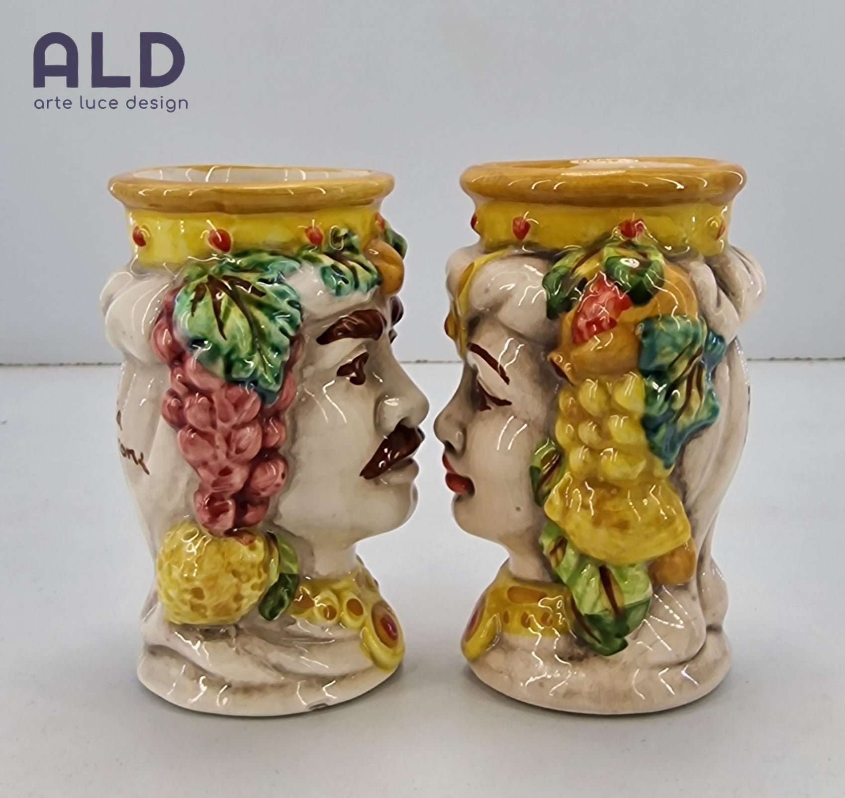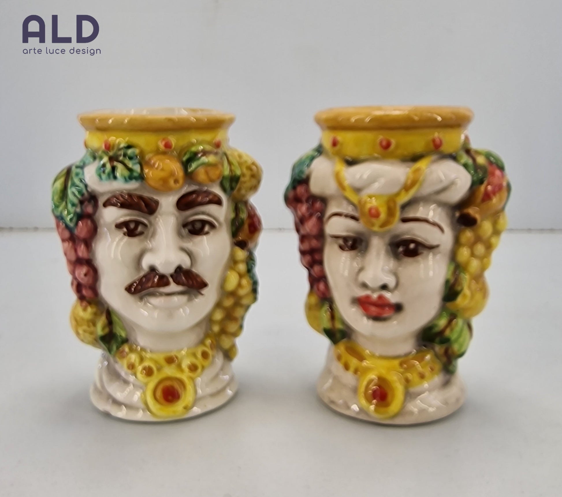 Teste di moro in ceramica di Caltagirone coppia vasi soprammobili altezza 11cm