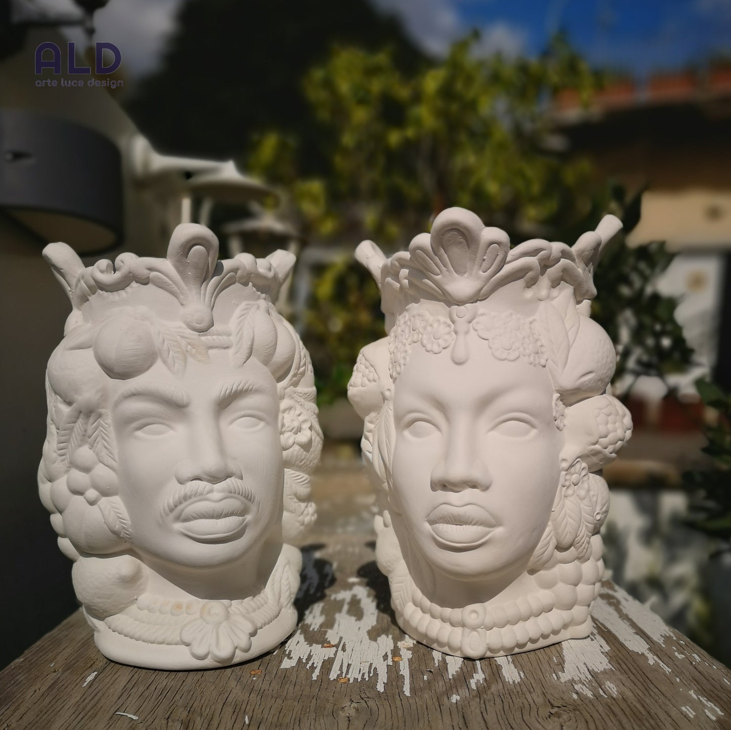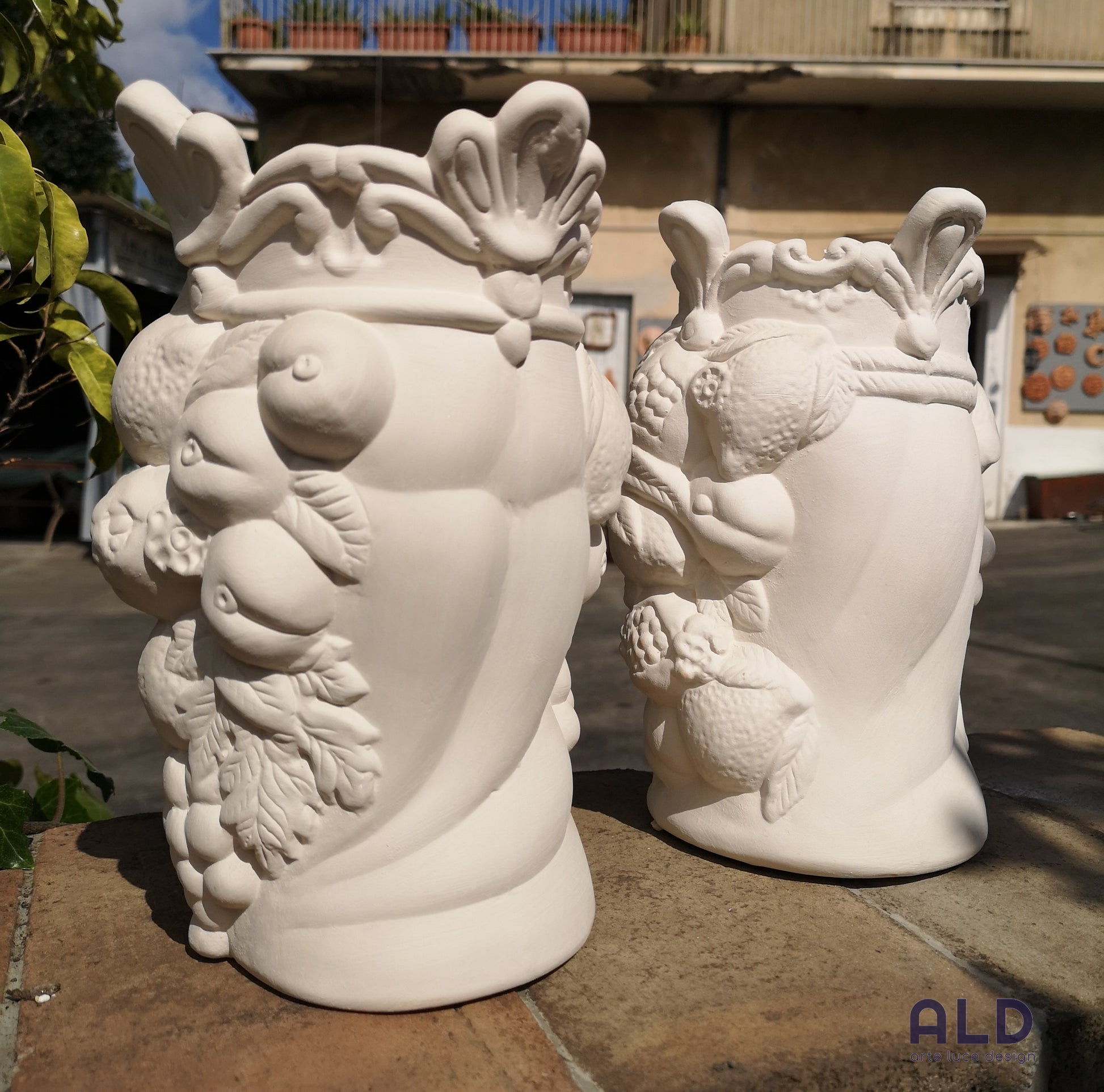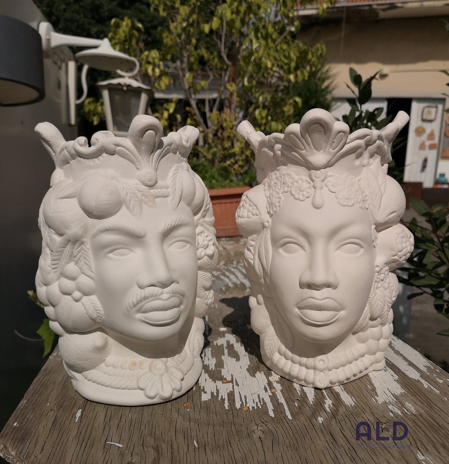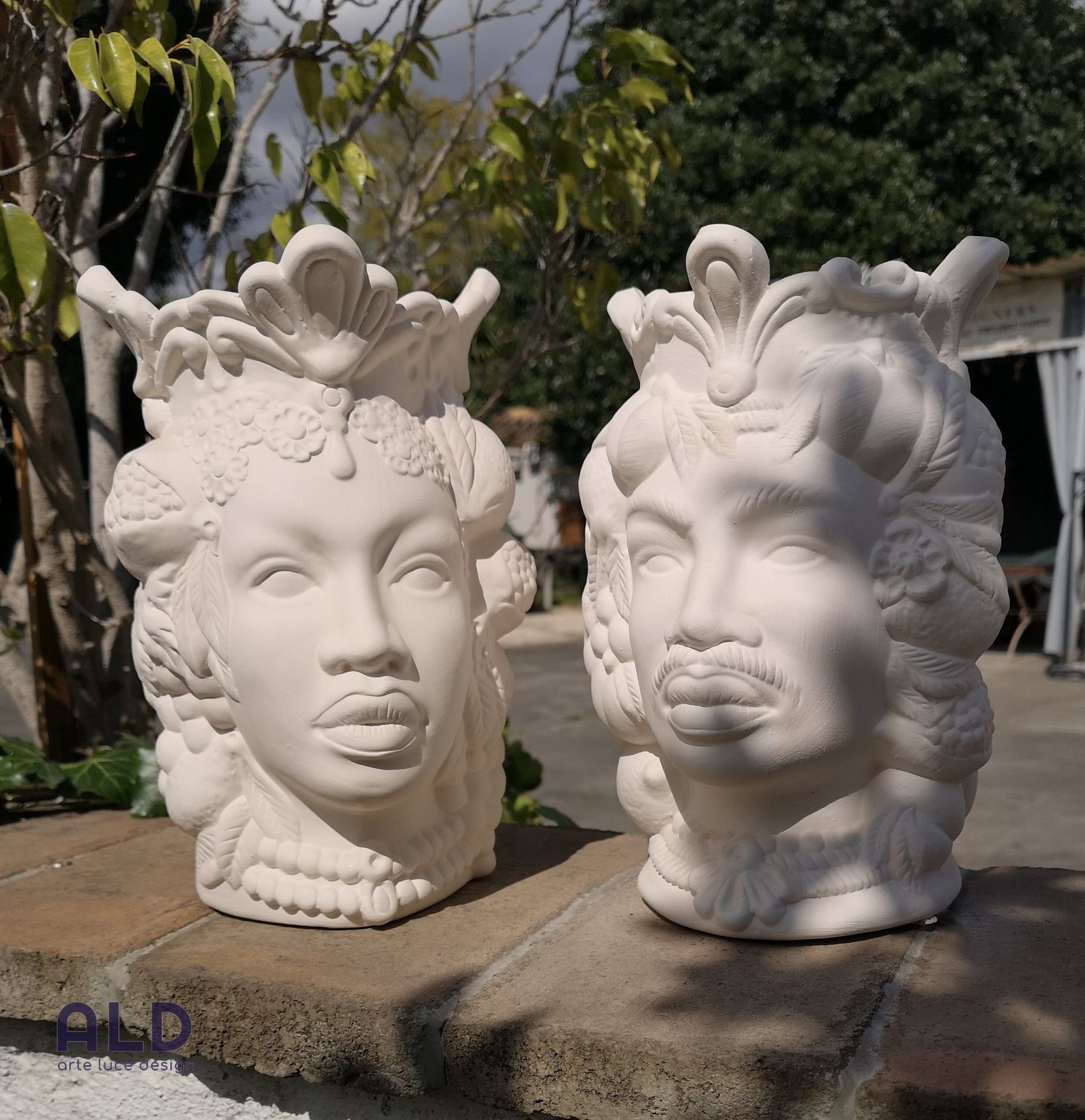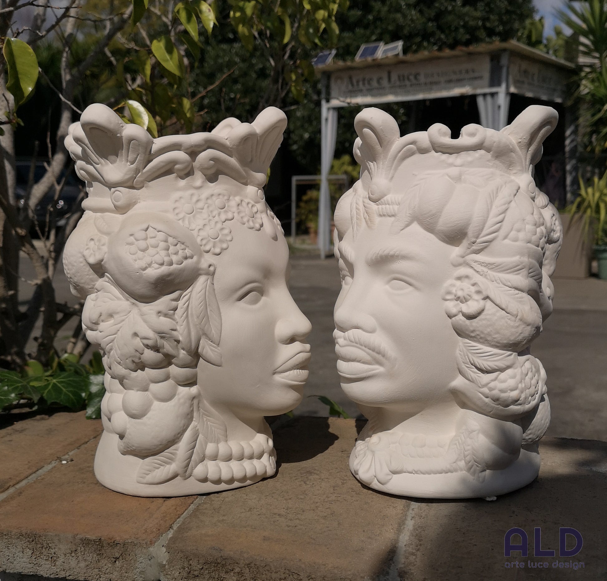 Teste di moro in terracotta bianca grezza coppia vasi soprammobili altezza 25cm