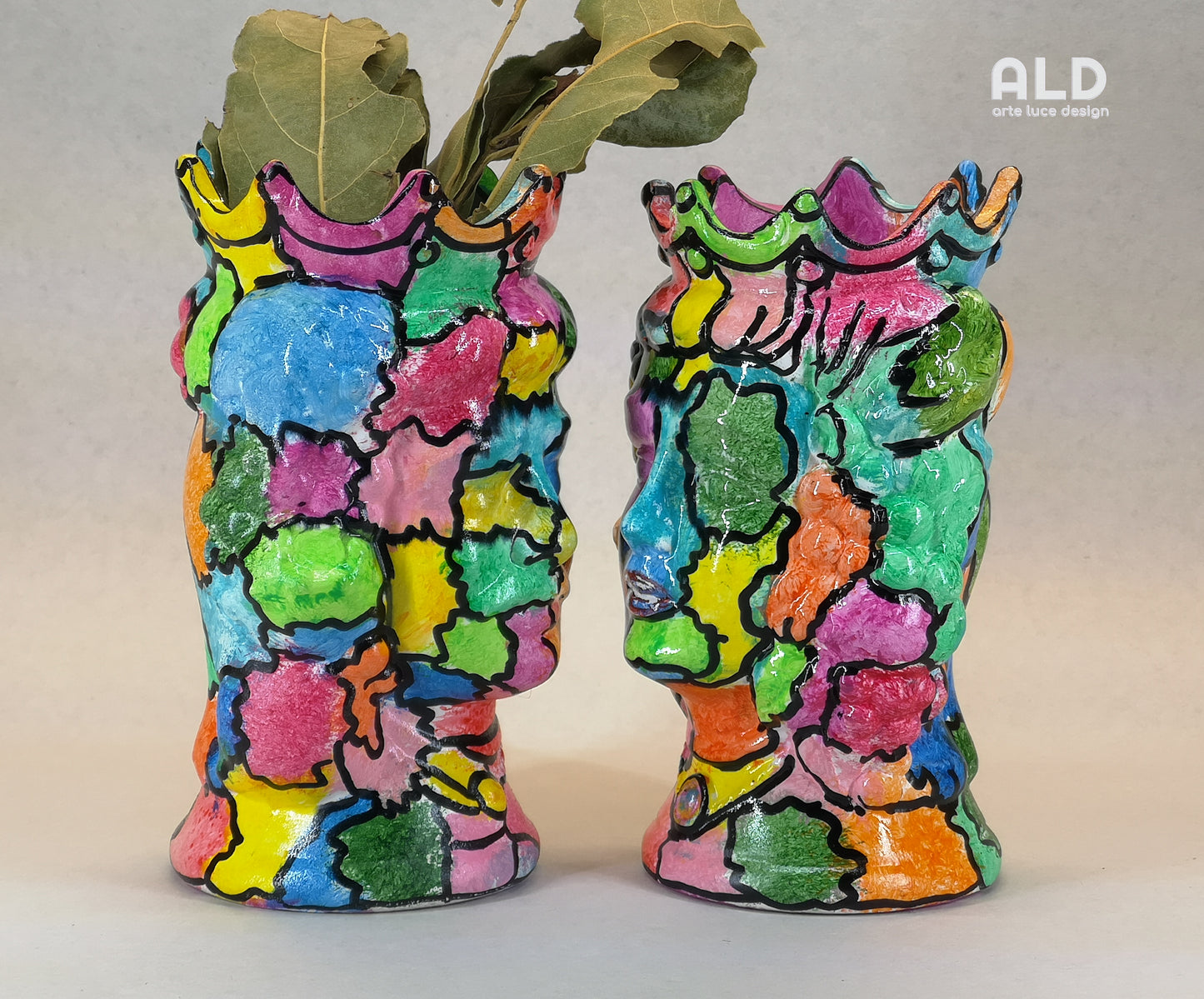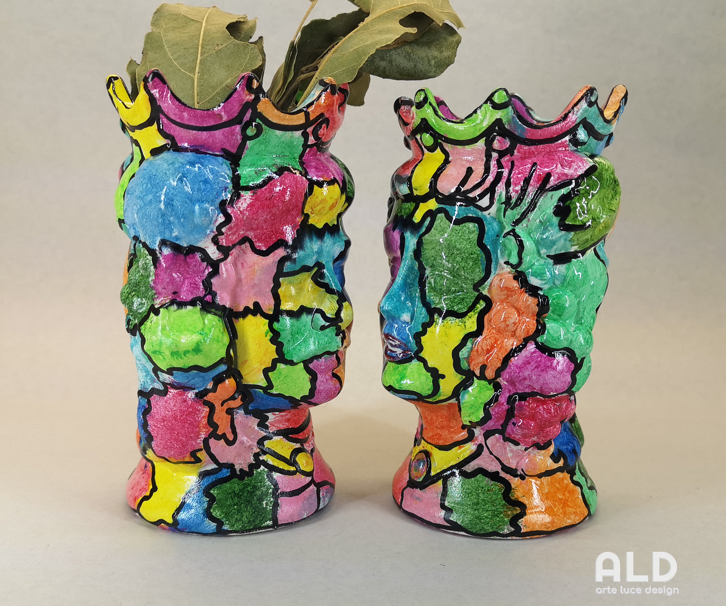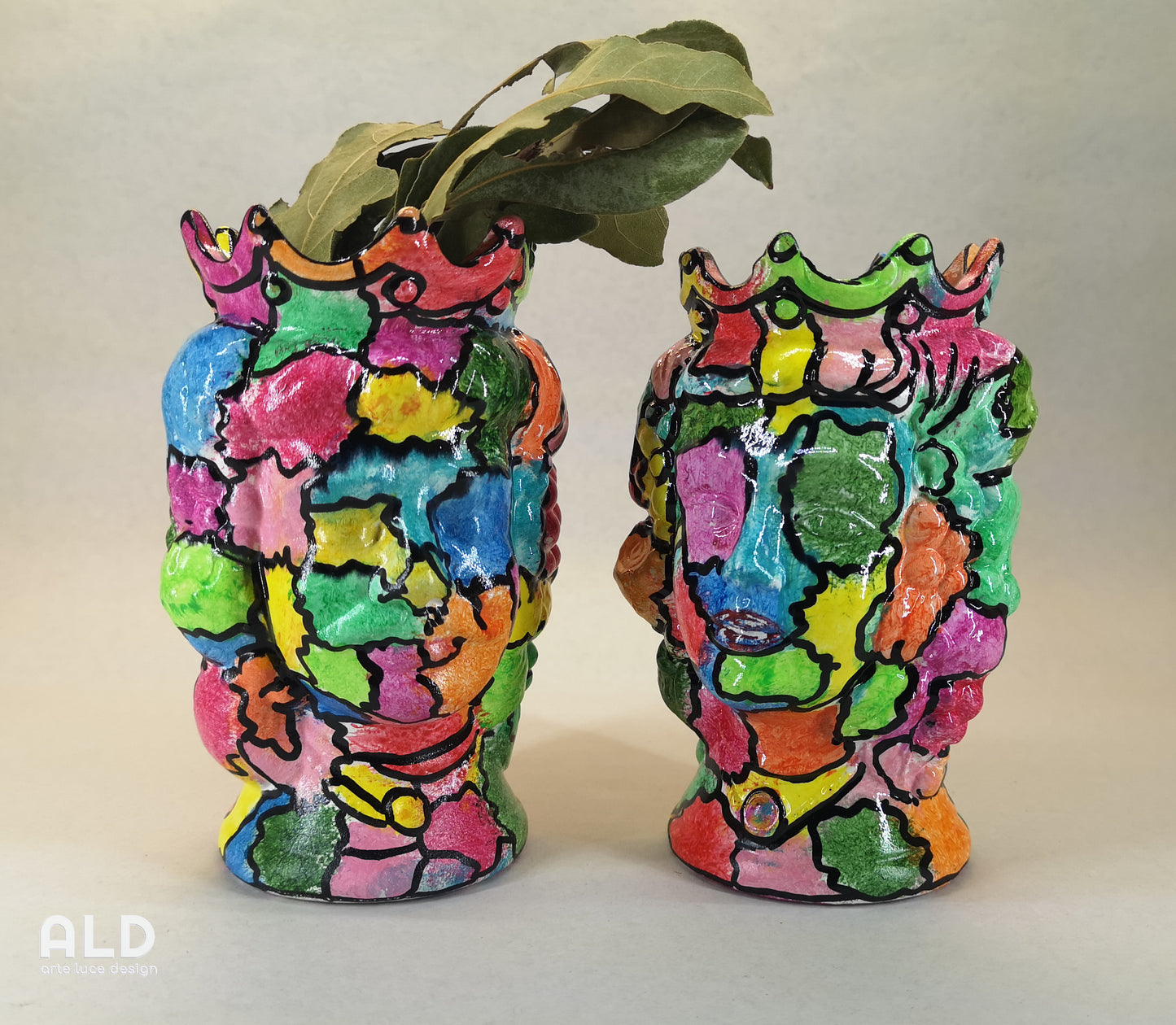 Teste di moro in terracotta vasi soprammobili moderni siciliani decorati a mano